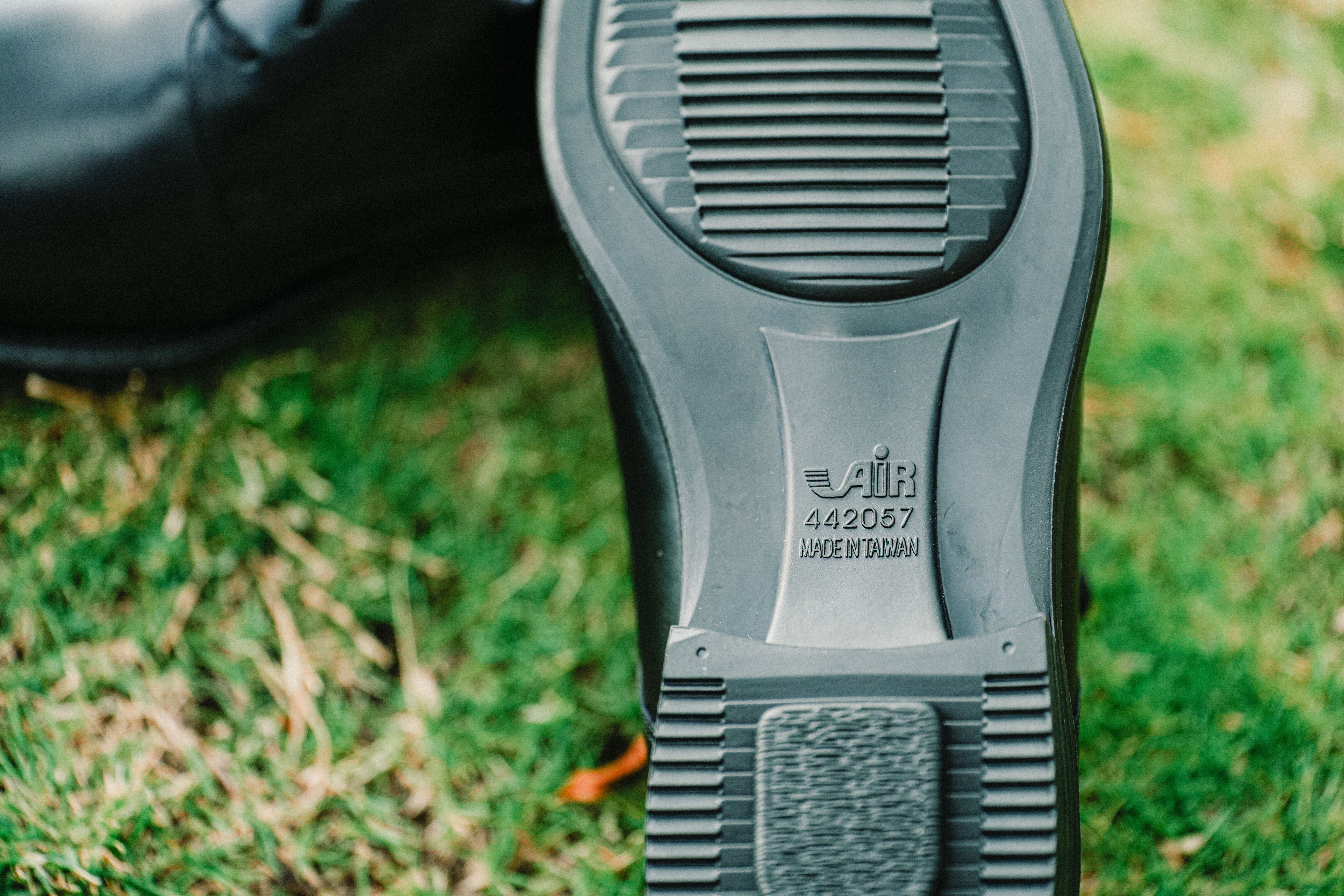 靴底のギザギザしたデザインは、排水をしやすくするため。悪天候や悪路でも滑りにくく、安定した歩行をサポートします。