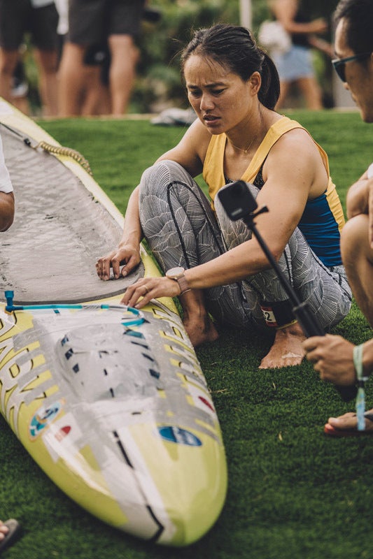 パドルボードやオーシャンスキーでのロングディスタンスレース、SUP、サーフィン、トライアスロンとの兼任選手もいた。