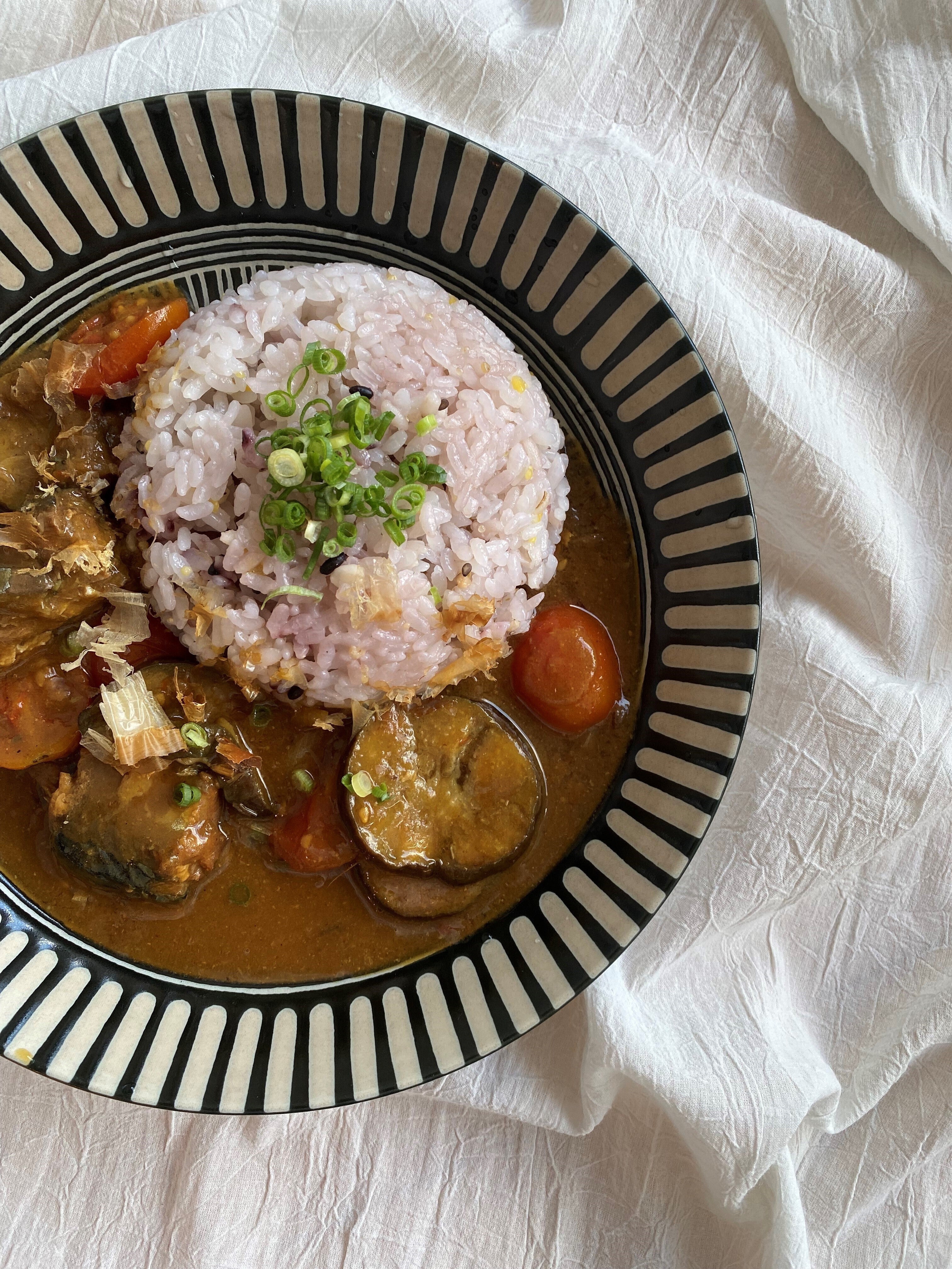 ▼規格外で出荷のできない金柑トマトを使用した鯖カレー