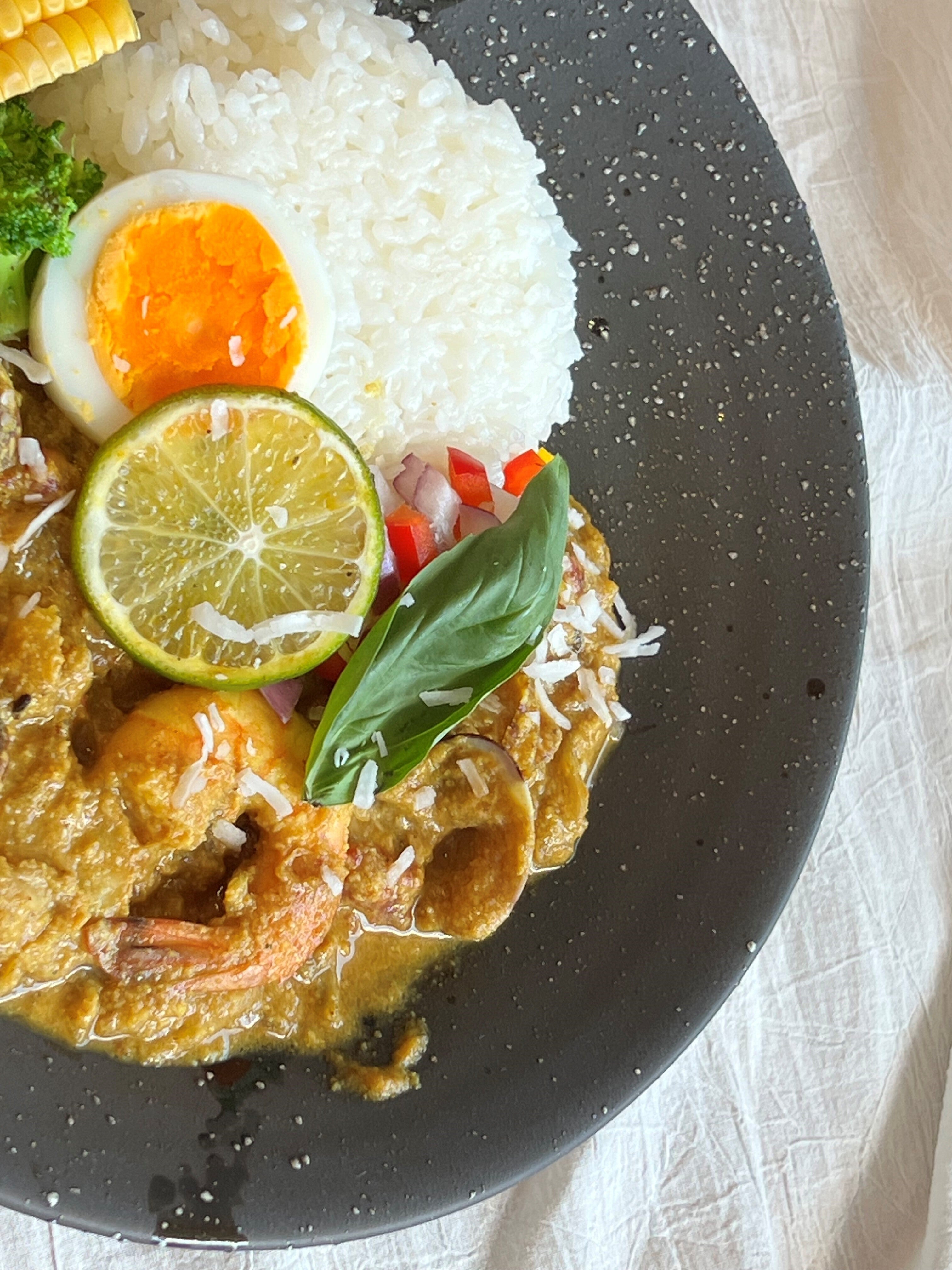 ▼年間70万トン発生するのに食用が1%のおからを使用したシーフードカレー
