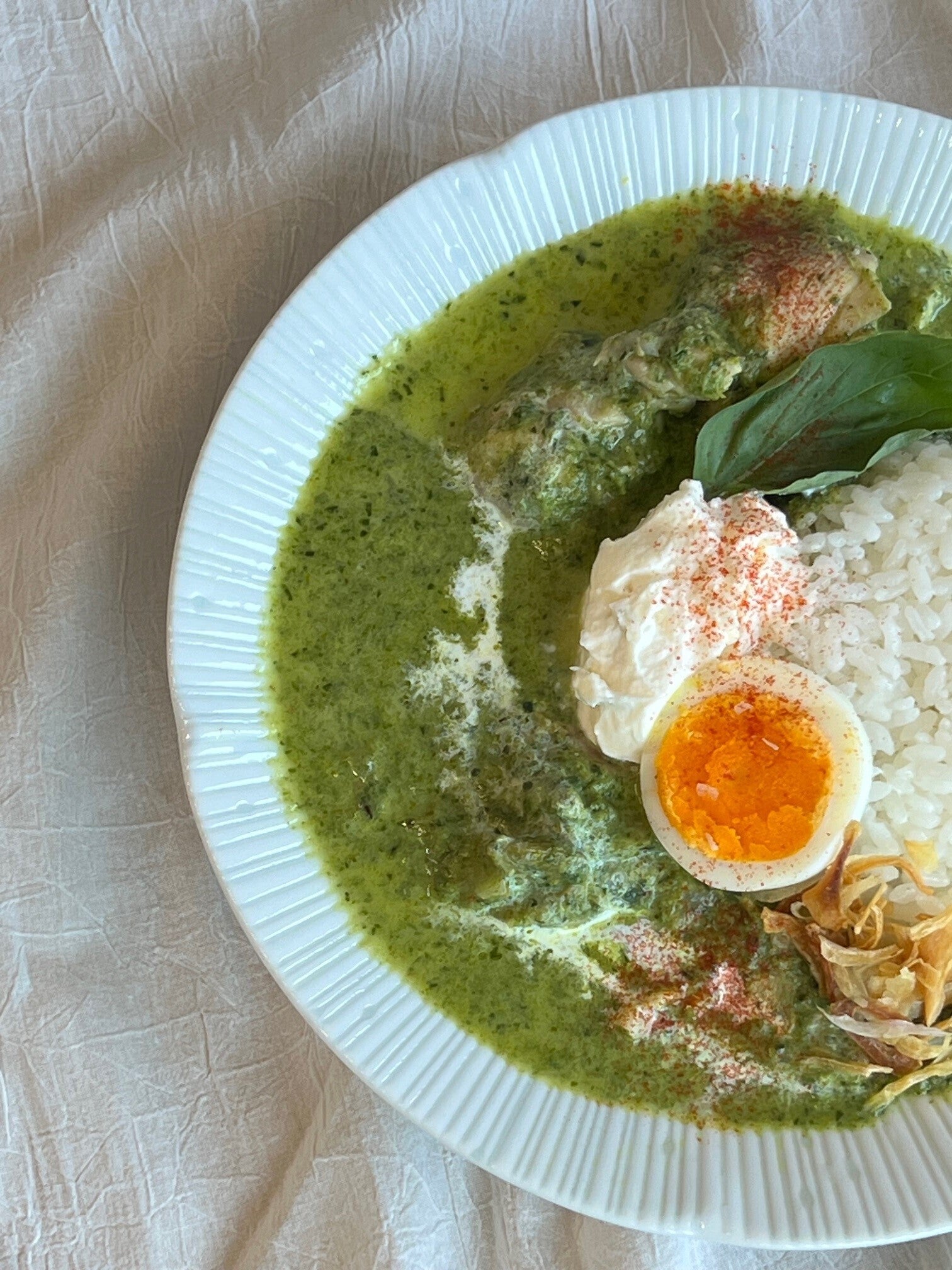 ▼生産工程で摘果・間引きされたリンゴを使ったほうれん草カレー