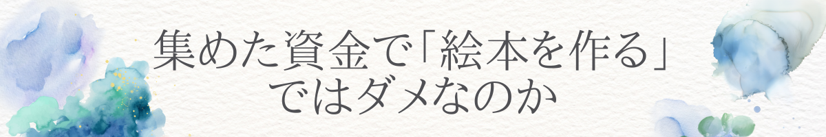 そもそも、クラウドファンディングで資金を集めるのであれば、その資金で収益源となる絵本の作成や貢献活動を行えばいい話なのでは?