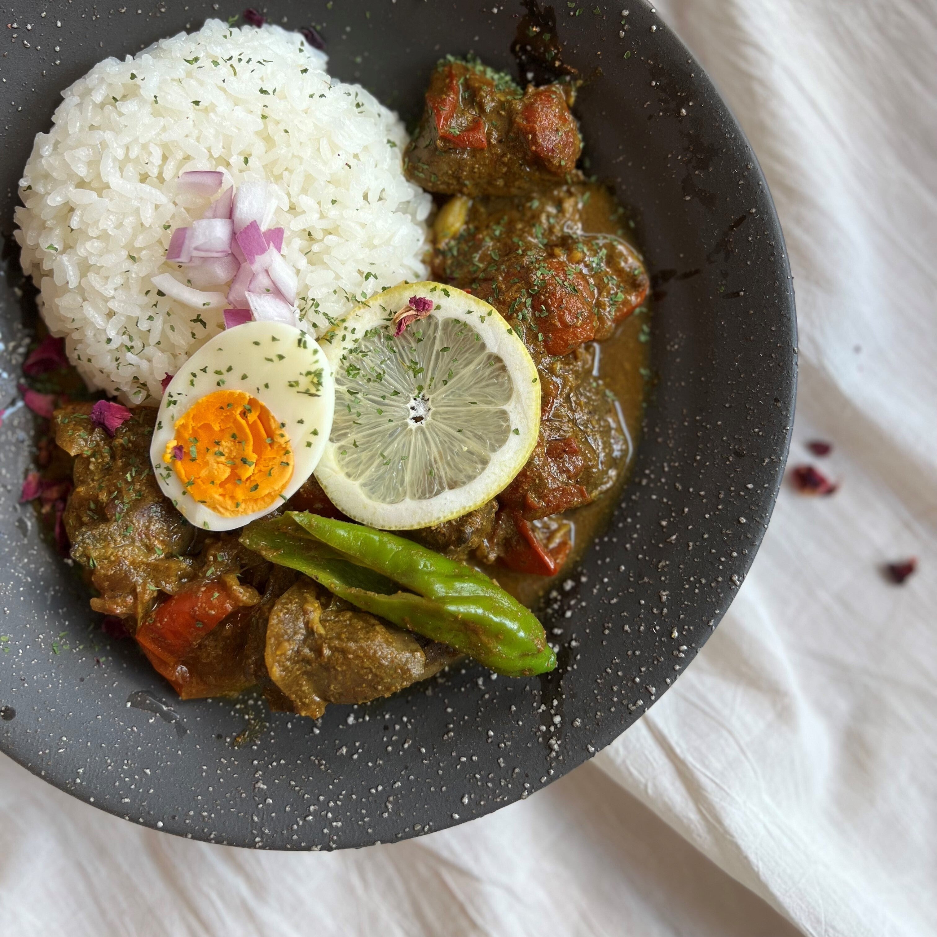 ▼規格外のトマトを使用したレバーカレー