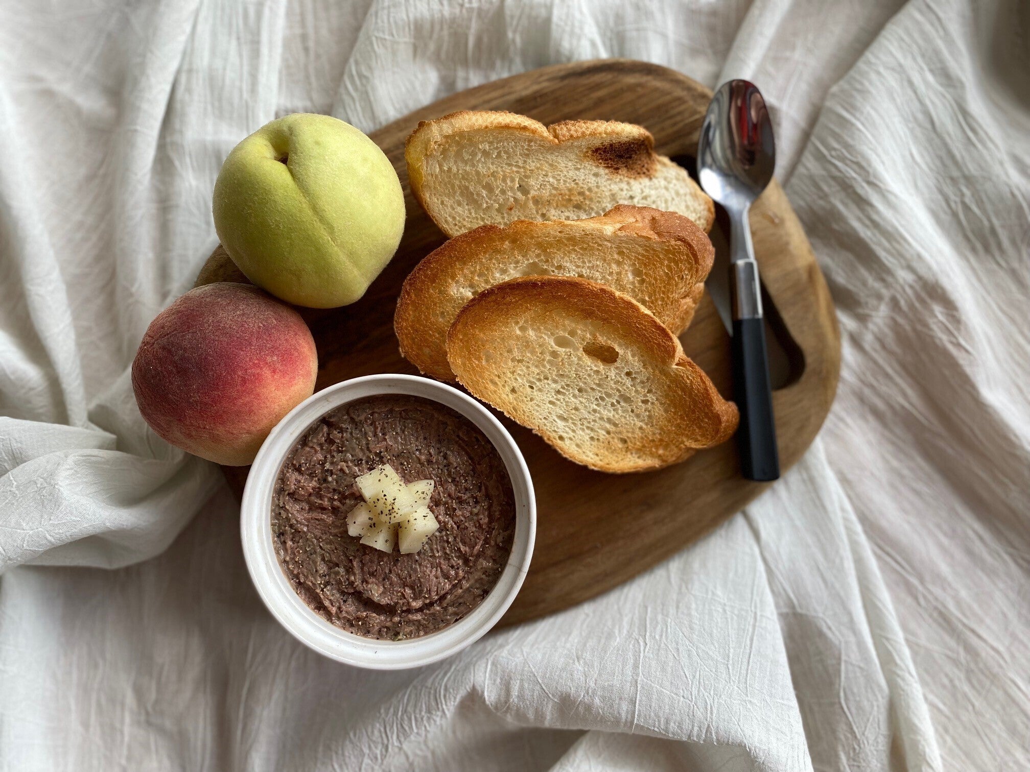 ▼生産段階で摘果・間引きされた若桃を使ったレバーペースト