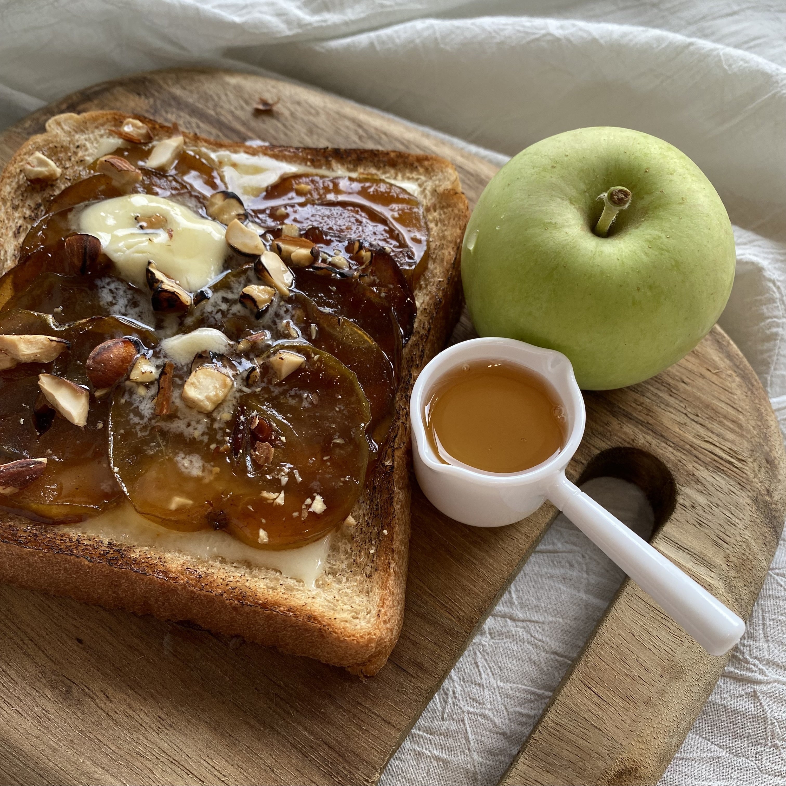 ▼生産段階で摘果・間引きされた山形県産リンゴを使ったオープンバターサンド