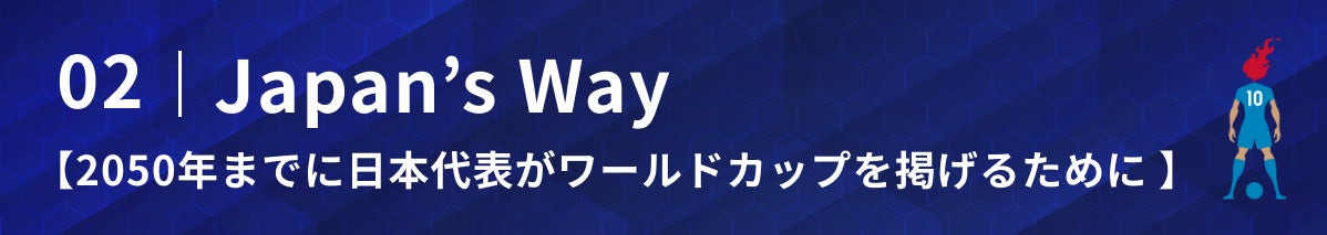 JFAは2005年宣言において「2050年までにサッカーファミリーを1000万人にし、FIFA ワールドカップで優勝する」という約束を掲げています。この夢を実現したときは、日本サッカーはどのような状況になっているのか。その「ありたき姿」から逆算して、現在とのギャップを埋め、そこに至る道筋が「Japan's Way」です。