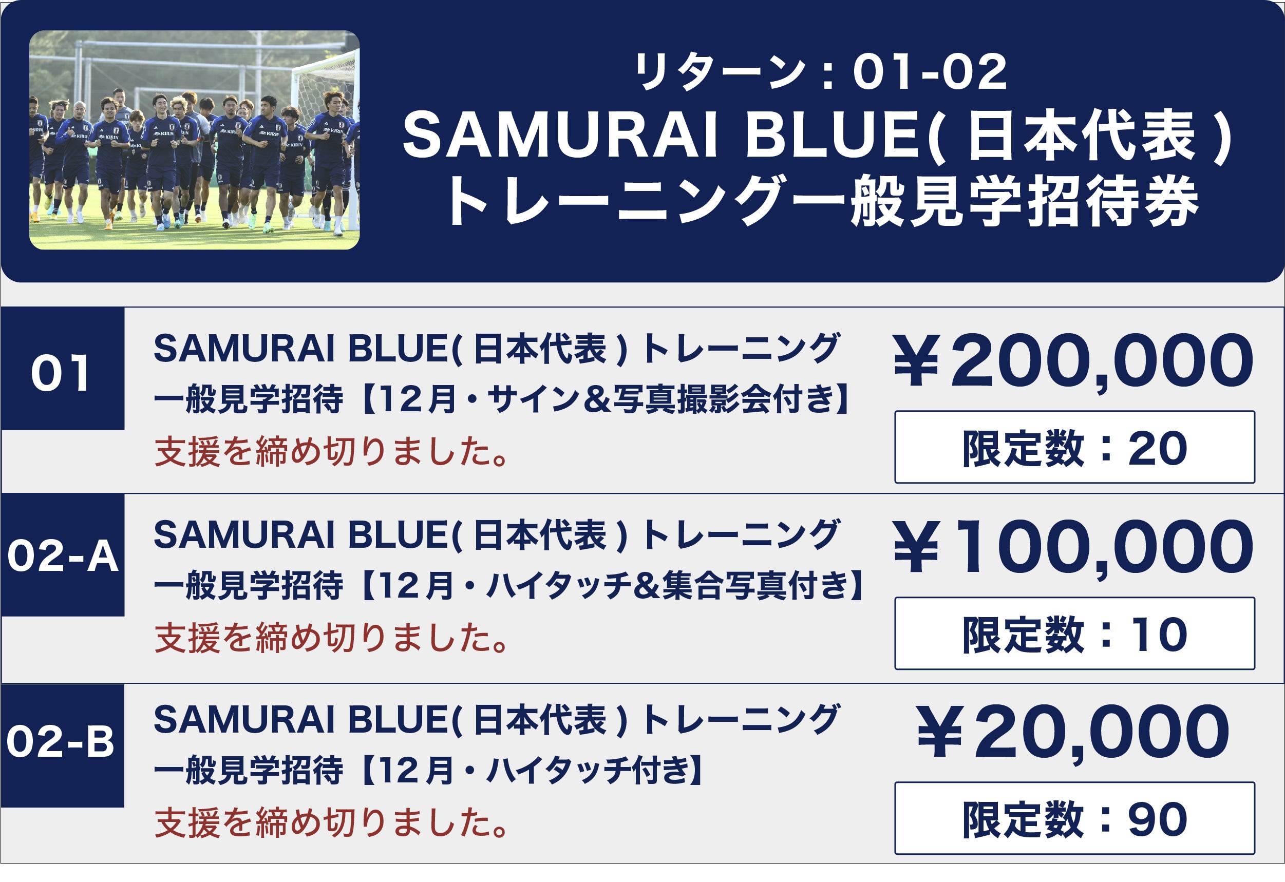 ・施設見学:SAMURAI BLUEがトレーニングで使用している施設(高円宮記念JFA夢フィールド)の通常は入ることができない内部を一緒に見学いただきます。