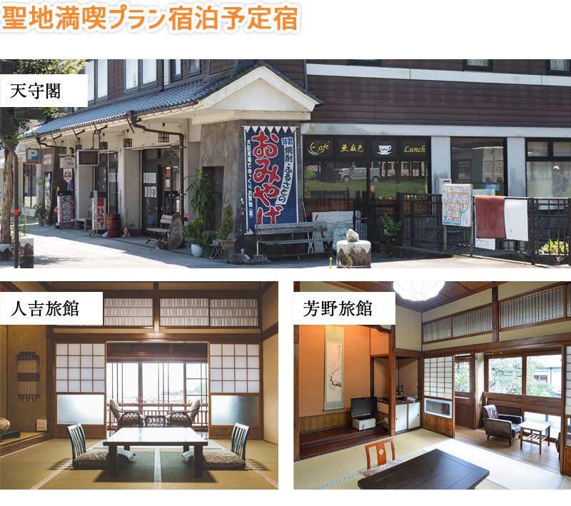 *ご希望宿泊日に人吉旅館様が満杯だった場合、芳野旅館様にご宿泊をお願いする予定です。