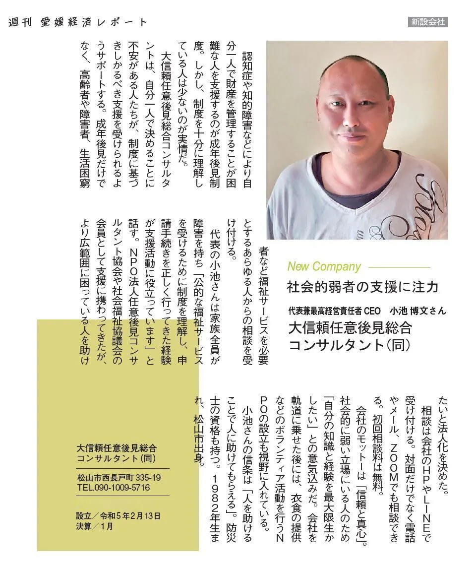 大信頼任意後見総合コンサルタント合同会社の小池と申します。