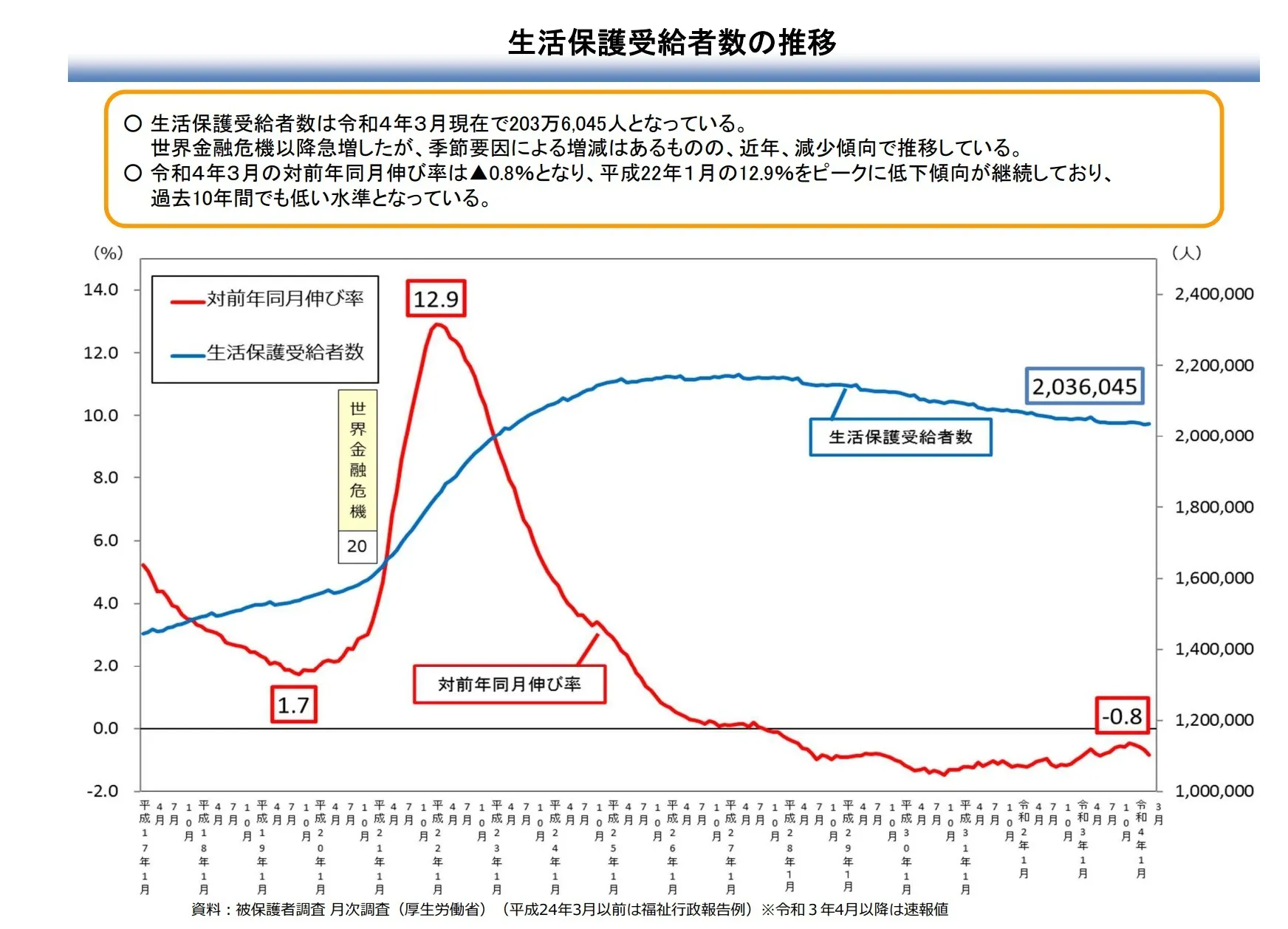 令和4年3月時点で生活保護を受給している方は生活弱者や生活に困っている方は203万6,045人となっています。(資料:被保護者調査 月次調査(厚生労働省))受給している方以外にも生活に困っている方々も数多くいらっしゃると、15年間支援してきた経験の中から考えています。
