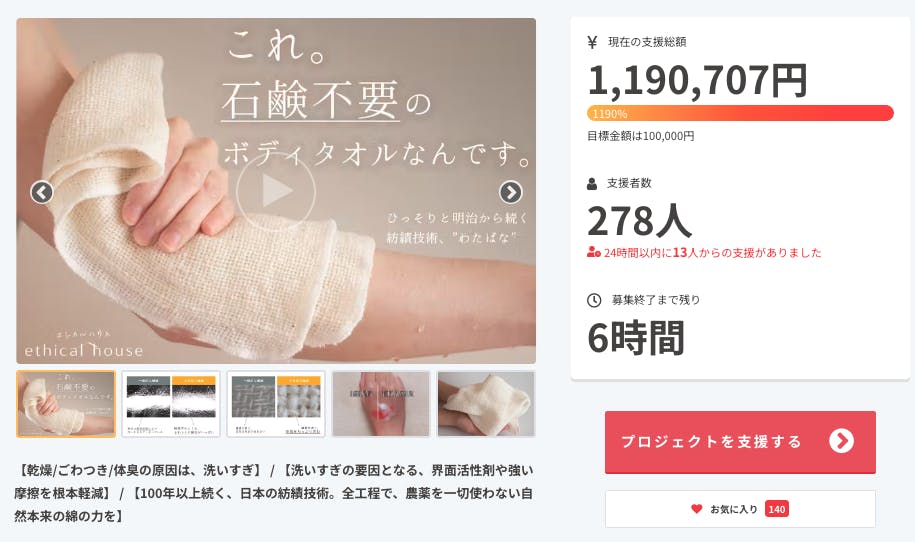 残り6時間で終了します(ご支援いただき誠にありがとうございます)
