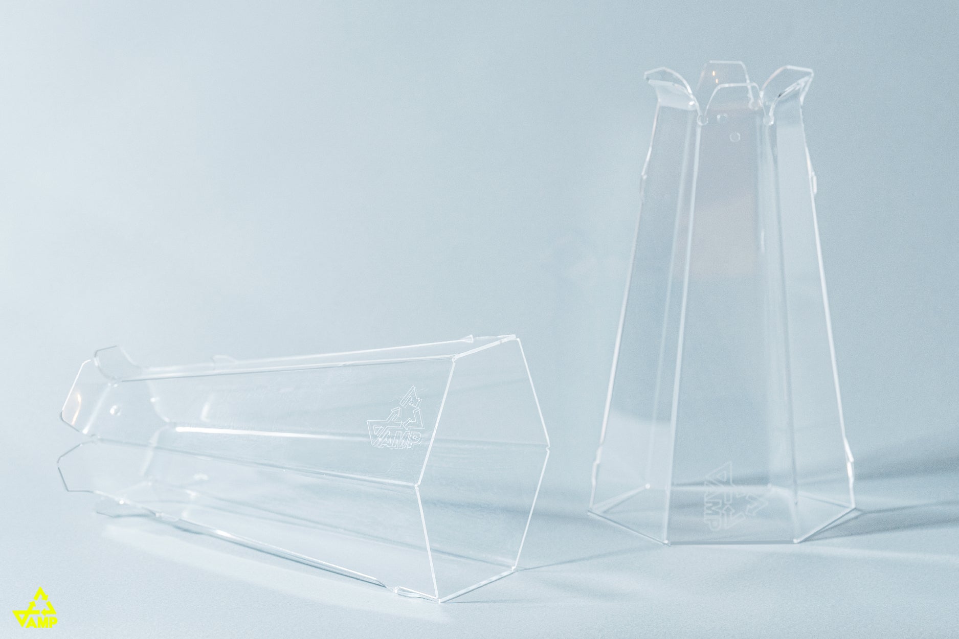 アクリルメガホンプロジェクト(略称:AMP)とは、大量のアクリル板が行き場を失っている現状の問題提起をすると共に、そのアップサイクルの可能性を提唱する取り組みです。コロナ禍で浸透したアクリルの「声を妨げる」イメージを逆手にとり、回収したアクリル板を「声を届ける」メガホンへと生まれ変わらせます。