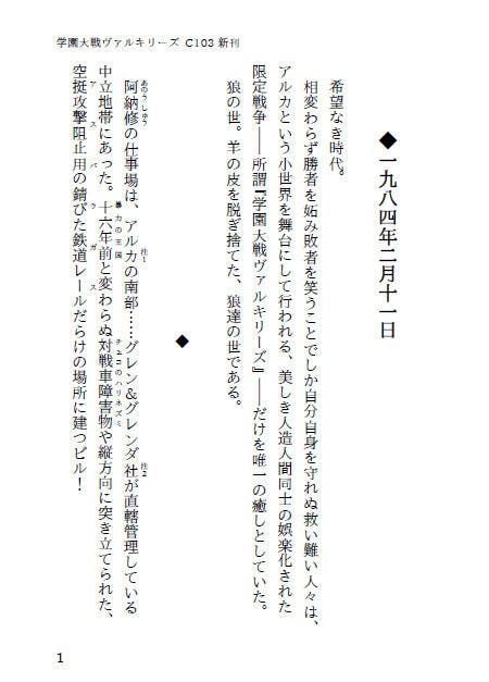 救い難い人々の唯一の癒しは、アルカという小世界を舞台として行われる、美しき人造人間同士の娯楽化された限定戦争――所謂『学園大戦ヴァルキリーズ』だけであった……。
