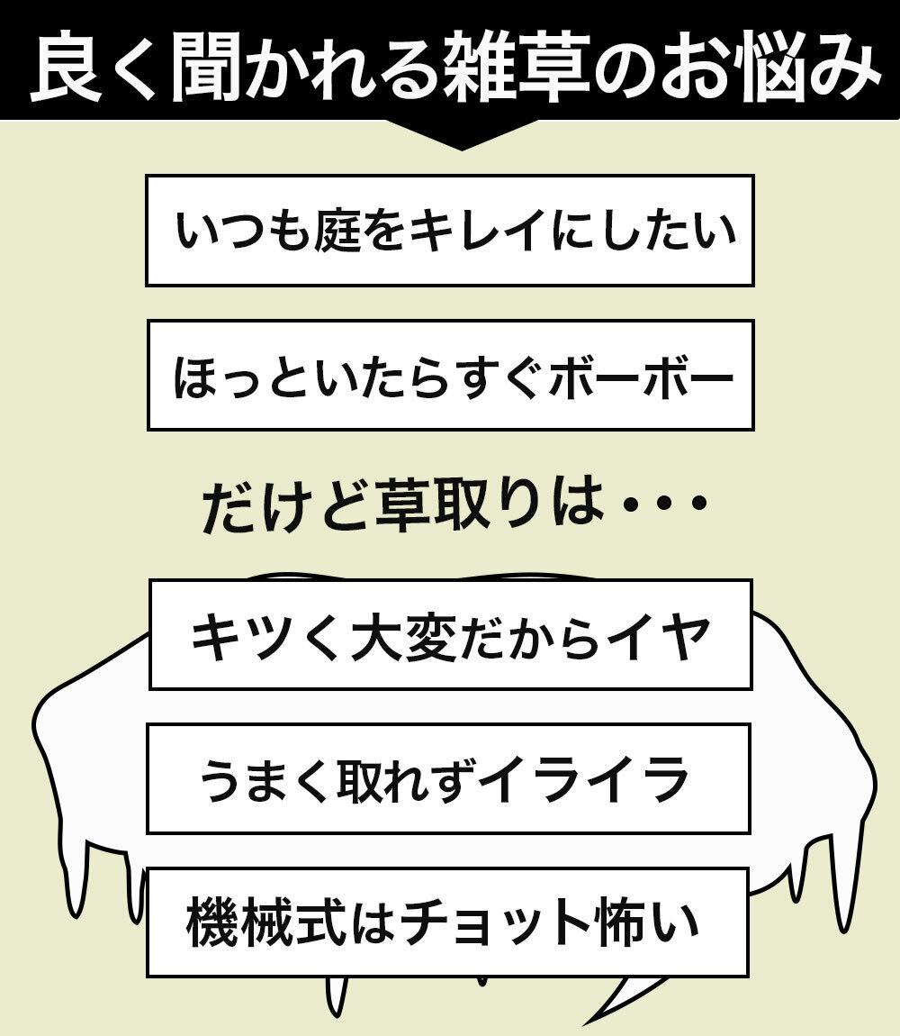 毎年、暑くなってくると庭を侵食してくるのが雑草たちです。その厄介さは、誰もが一度は頭を抱えたことがあると思います。私自身は家、会社周辺や町内などで草刈りを行いますが、草が活気づいてくるのが気温の上がる時期でもあり、同時に暑さとの闘いもあります。なので、少しでも手早く楽に作業できるものはないかと、ホームセンターやネットショップなどで多くの製品を購入し試してきた経験があり、最近では国内だけでなく海外の製品も物色し取り寄せては日々いろいろな道具を試しています。
