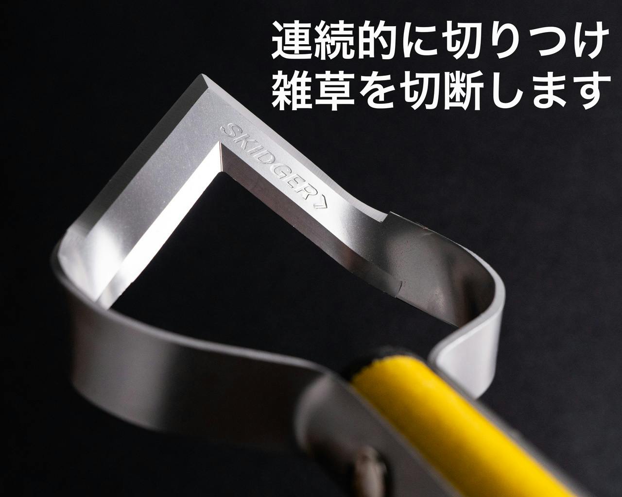 鋭利なブレードに勢いもプラスして除草力を高める。名前の由来でもある「すべり=SKID」を取り入れズバッとパワフルに刈り取るのがスキッジャーです。