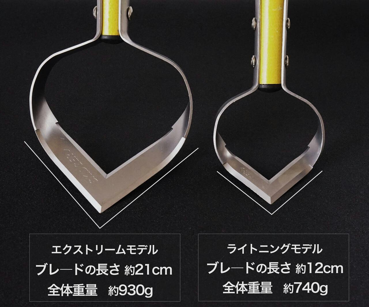 小さなフォルムでも大きな成果。ライトニングモデルは皆様のお声をもとにしてブレード部分を小型化、小さくなったその姿は、見た目以上に力強さと機能性を秘めています。一見すると物足りなく見えるかもしれませんがメリットも多いです。まず、一度にかかる抵抗が減ったのと重量も軽くなったことも合わせて、ご年配の方や女性の方も気軽に扱いやすいです。ライトニングとはまさに雷光のような速さで雑草を取り除く様子を表しています。