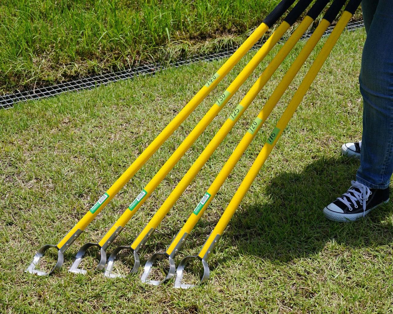 次に操作性の観点からも、ユーザー様にフィットする長さを加えました。伸縮式のスティックも選択肢としてはありましたが、スキッジャーのハードワークに耐えられずに継ぎ目からの破損が想定されるため見送りました。テスト使用でも長さが異なるだけで「こっちの方がいいわ」などのお声も数多くあがりましたので、長さを選択できるのは重要なポイントであり、それぞれのシーンにも対応できると考えています。