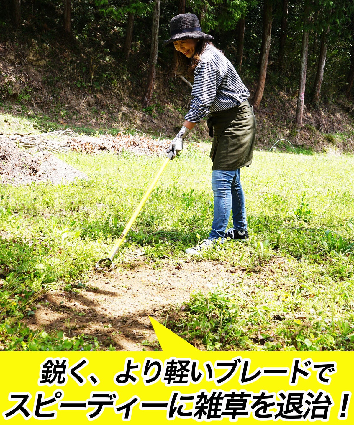 両刃の特性を生かして前後に動かせば波状的に除草するので作業を効率的に行うことができます。