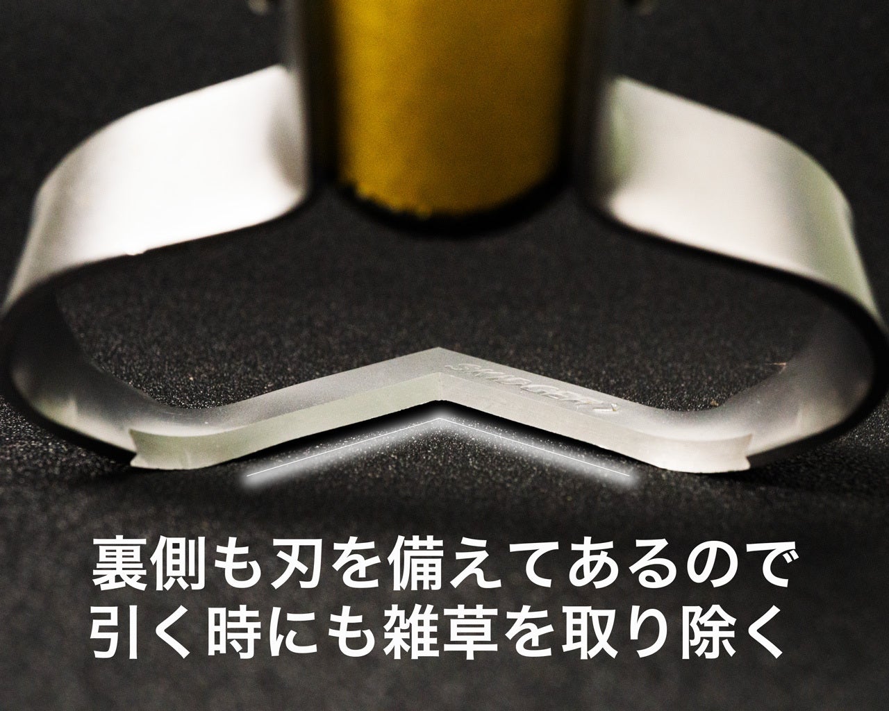 表はもちろん裏にも刃付けを行っているので、押した後の引き戻す動作でも刈れる構造です。