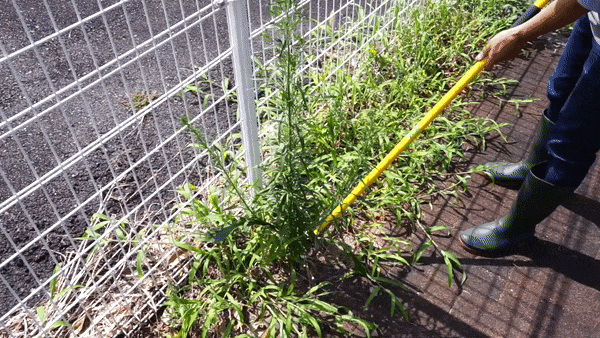 また1回目は軽くあて、戻ってくる雑草に対して2回目をあてると反動も利用したカウンター刈りとなります。こちらもリズムで覚えておくと役立つ除草術です。