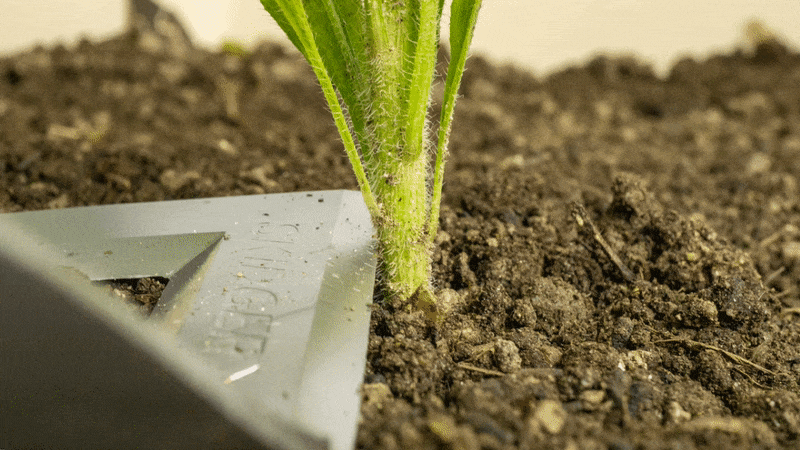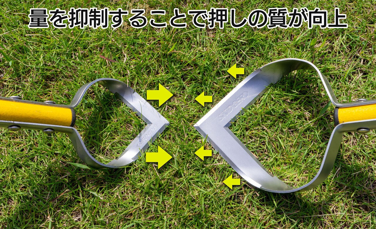 道具をスライド操作すると土も一緒に運んで操作が重くなることもありますが、スキッジャーは中央の空間から土が抜けていく構造なので、不要な抵抗は軽減させ限りある労力を草取りに集中させられます。