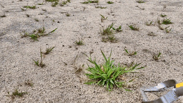 また地表を進むと雑草の根元付近の成長点から切断することもできるので少しずつ根を弱らせることもできます。(地下茎系の雑草を除く)