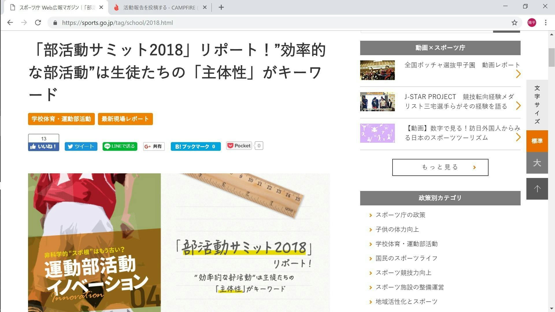 2018/09/29 16:02部活動サミットの報告がスポーツ庁のホームページにアップされました。ぜひご覧ください。 https://sports.go.jp/tag/school/2018.html リターンのシャツと報告書ですが現在梱包中です。お待たせして申し訳ございません。 どうぞよろしくお願い申し上げます。 代表 風間悠平 もっと見る