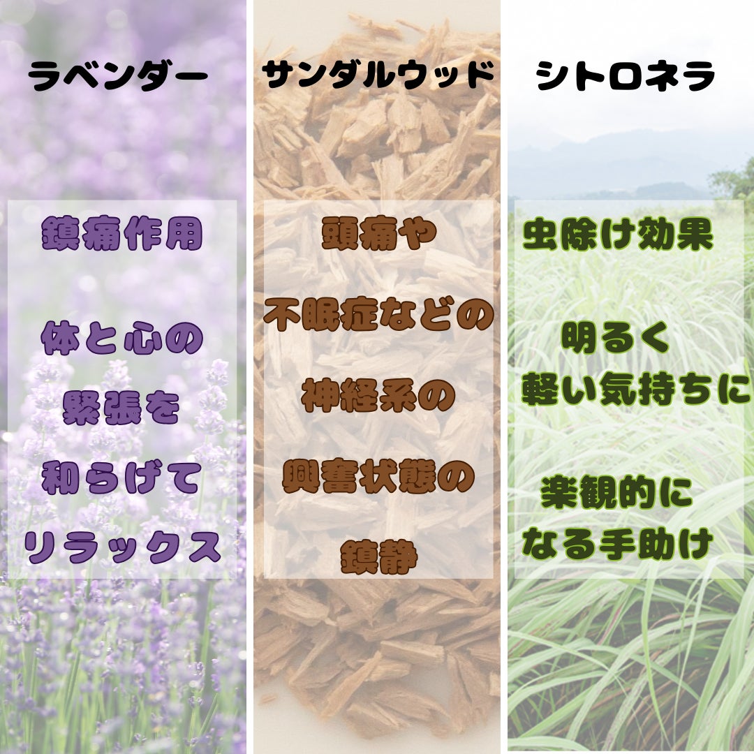 今回は『ラベンダー』『サンダルウッド』『シトロネラ』の3種類を制作