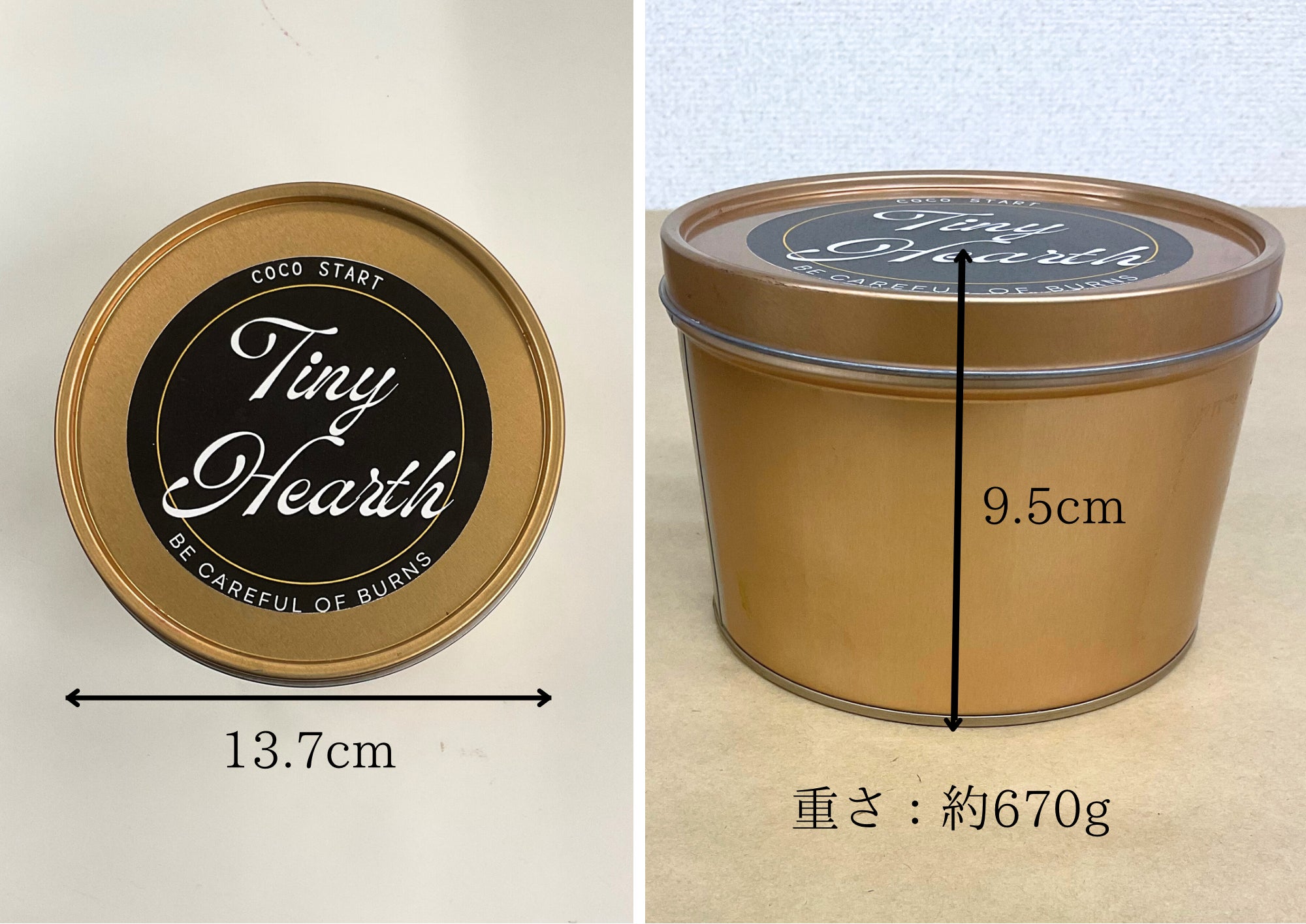 ■本製品はキャンドル本体と追加のロウ引きされた木10本のみであり、写真に掲載されているライターやトングは付属しておりません。