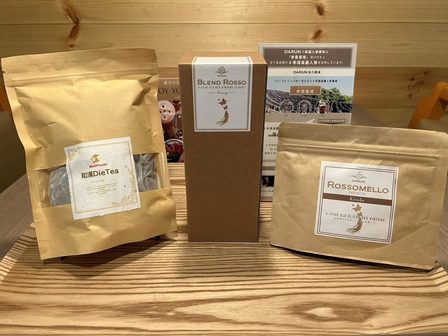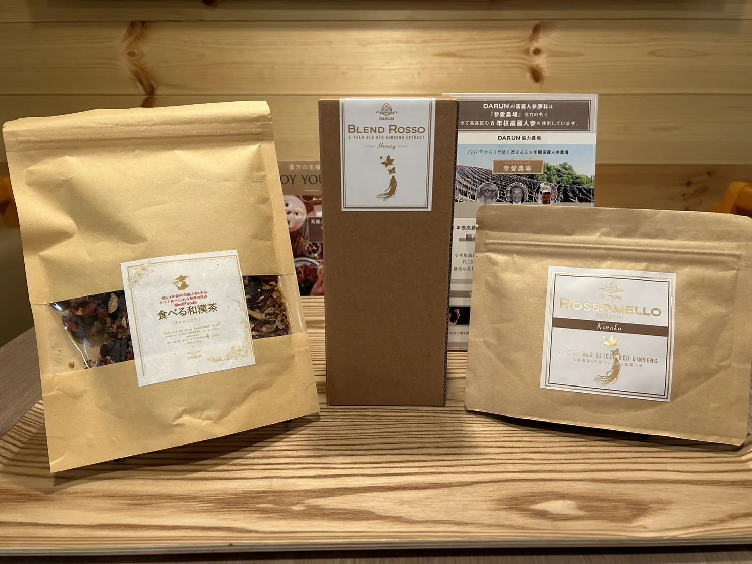アイカ製薬株式会社代表 漢方薬剤師・薬膳料理研究家の大久保愛先生監修のもと、薬膳粥やハーブティー高麗人参専門ブランドDARUNの代理店契約も結んでおり、和漢茶や当店オリジナルブレンドの高麗人参配合茶なども販売致します。