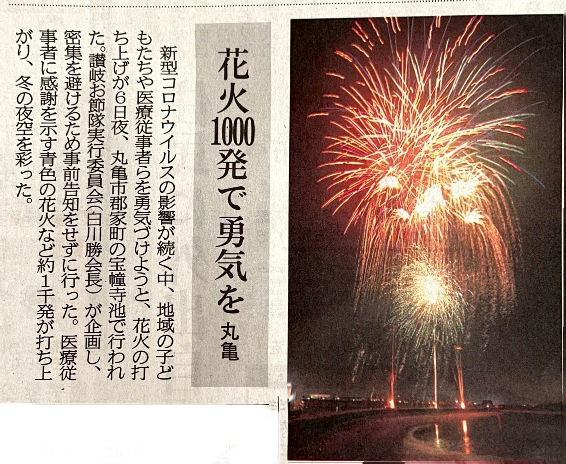 本年は地域の子どもたちはもちろんのこと、香川県内の医療機関の小児病棟の病気と闘う子どもたちや、緩和病棟で病魔と闘っている患者さんに少しでも笑顔を届けたい、その想いで本年も花火大会を開催すべく計画をしております。