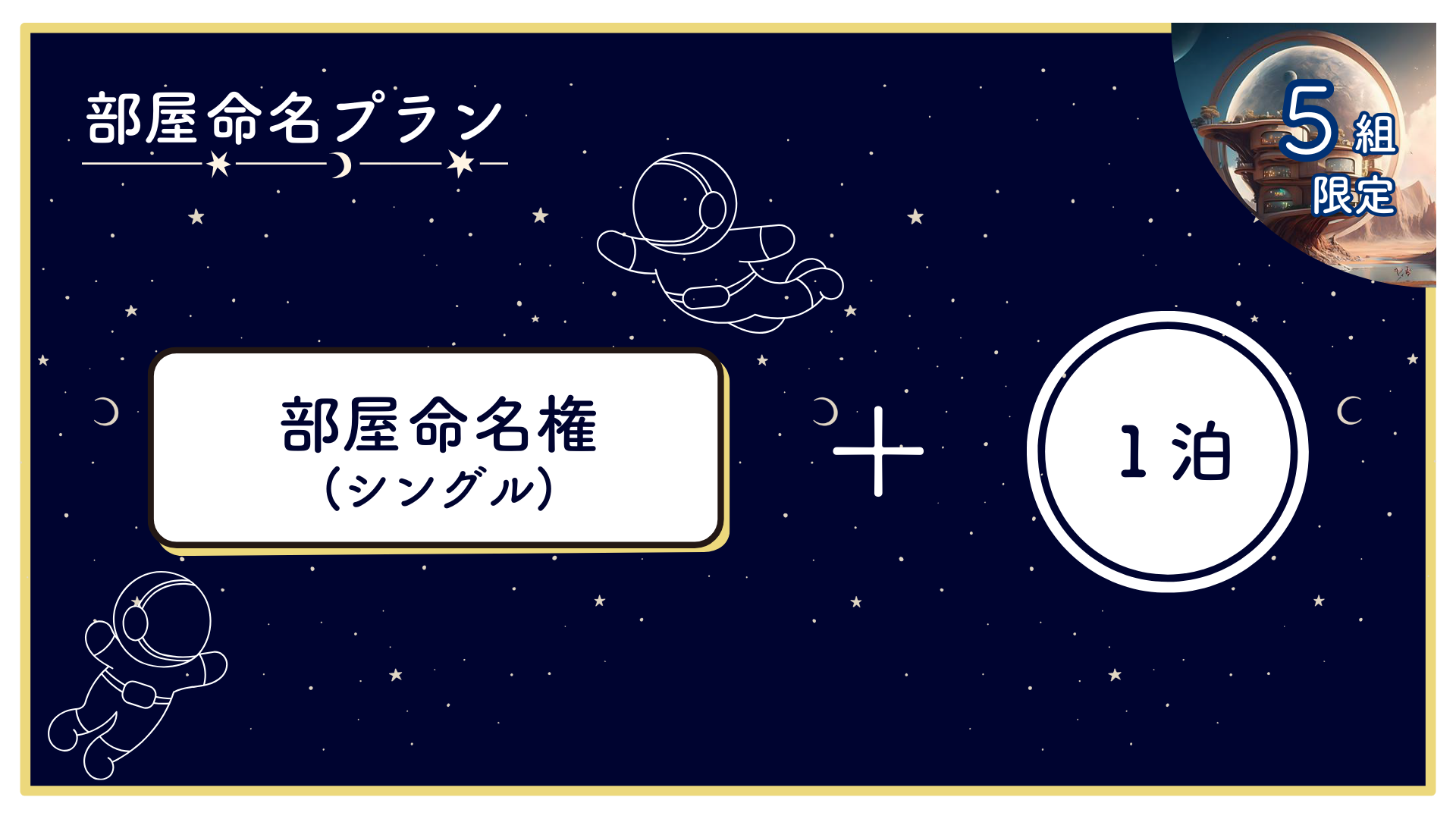ご宿泊に加えて、宇宙ホテルの部屋に名前をつけていただけます!