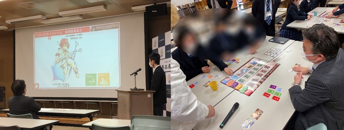 私たちの取組みの第一歩は、熊本県上天草市、地方経済総合研究所との共同事業として、高校生の好きなマンガやゲームといった楽しめる要素をもとに、架空の「ヒーロー」を考え、生み出すことで、実際に地域で起きている社会問題を考え、SDGsの目標達成を考えられるプログラム(講座)を実施してきました。