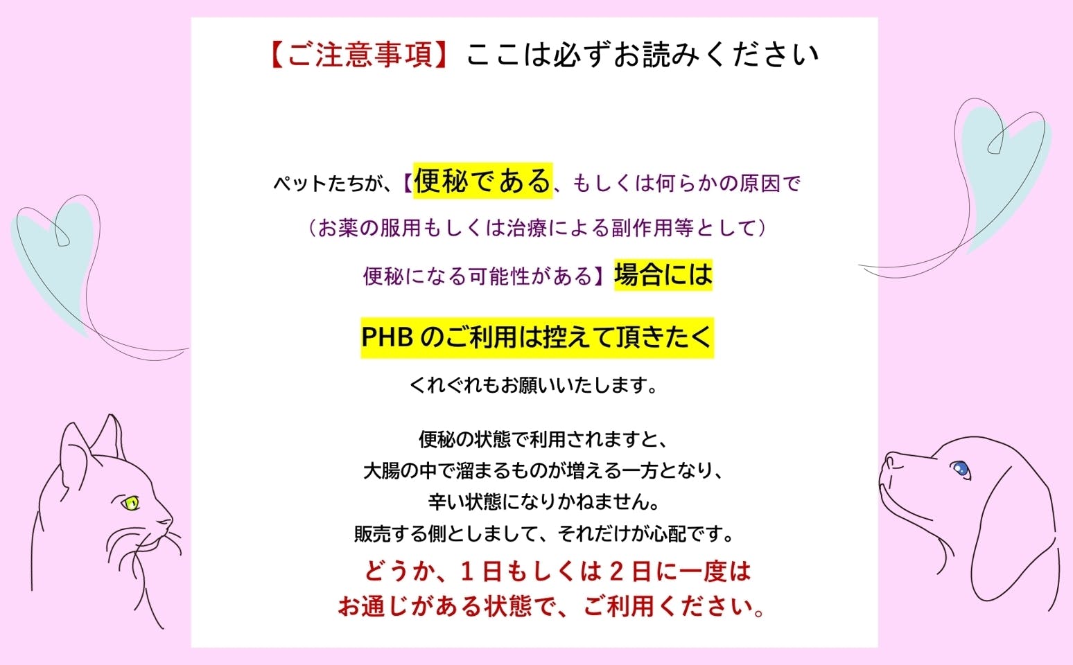※お願い/PHBはペットたちが便秘でない状態でお使いください