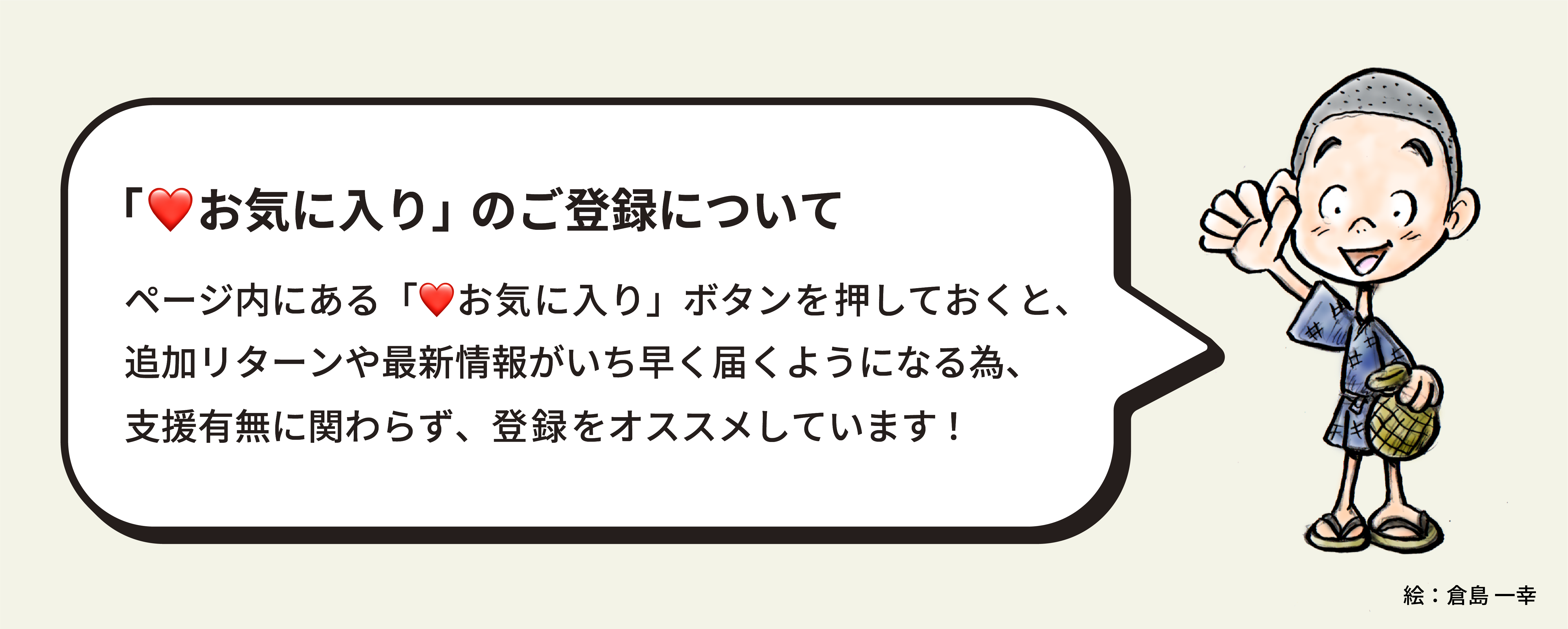 ただし... 今回のクラウドファンディングは一方的にお願いをするようなものでなく、普段ではお届けできないような【クラファン限定のリターン】を用意したり、プロジェクト期間自体が楽しくなる“お祭りのような工夫”もたくさん考えています。まずは、リターンをご紹介させてください。