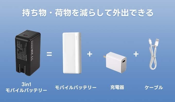本製品はモバイルバッテリーだけでなく、充電器としても使用できます。電池切れや緊急時でも充電できるので便利です。