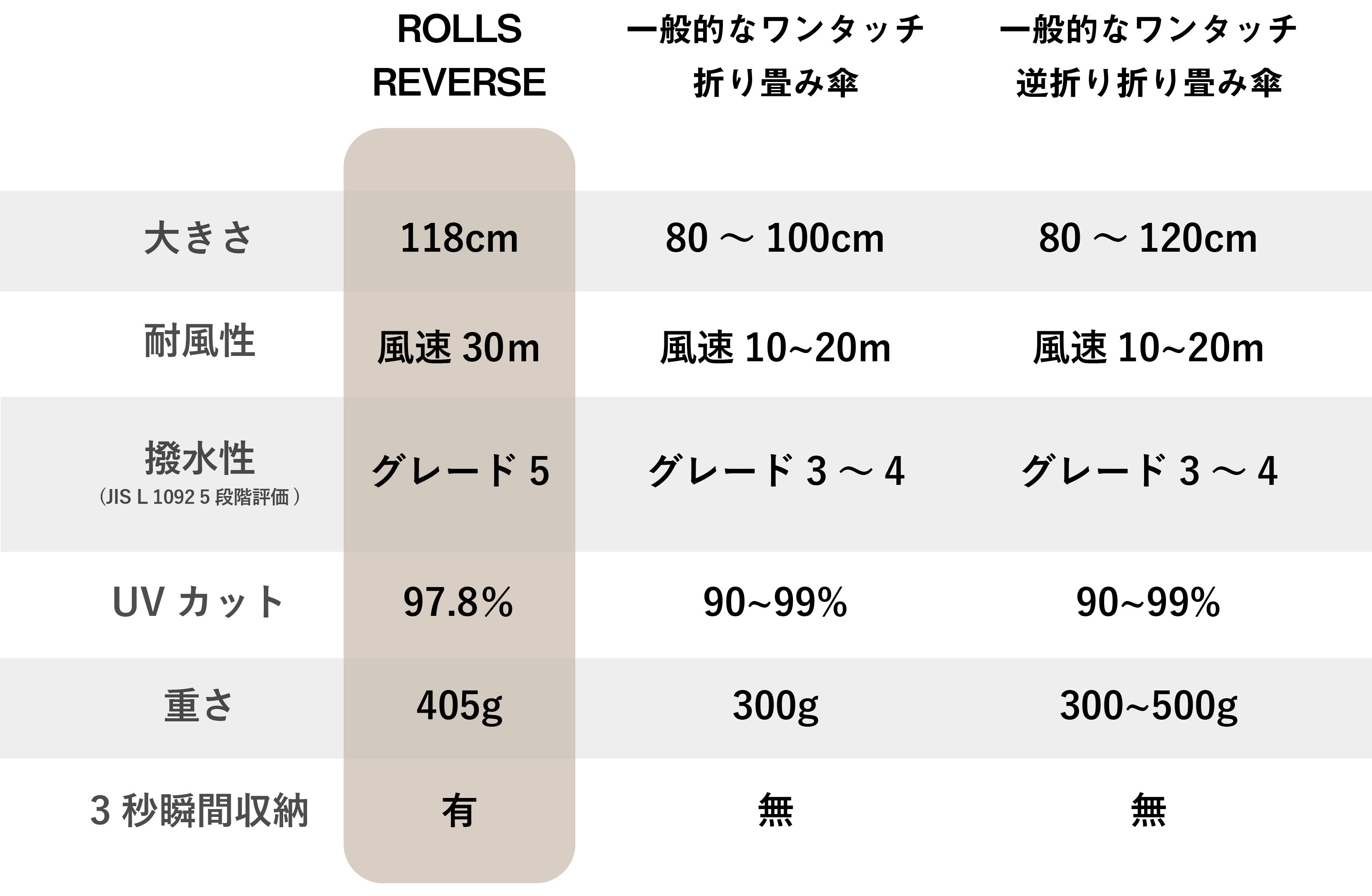 ■一般的なワンタッチ折り畳み傘との比較表