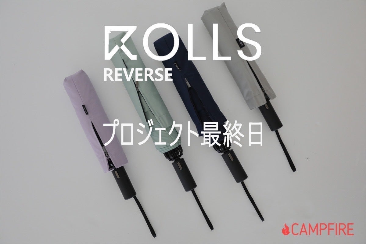 シリーズ累計1.4億円調達した、美しく畳める、3秒瞬間収納傘のROLLSから開発期間2年、試験に1年かけた周りが濡れにくい逆折りタイプのROLLSの最新モデル、ROLLS REVERSE(ロールスリバース)がついに登場!前作から大きく5点改善し、更に使いやすい折り畳み傘として生まれ変わりました!