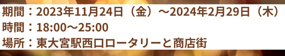 ぜひ、街を明るくするこの「東大宮西口駅前イルミネーション」の取り組みを応援してください。