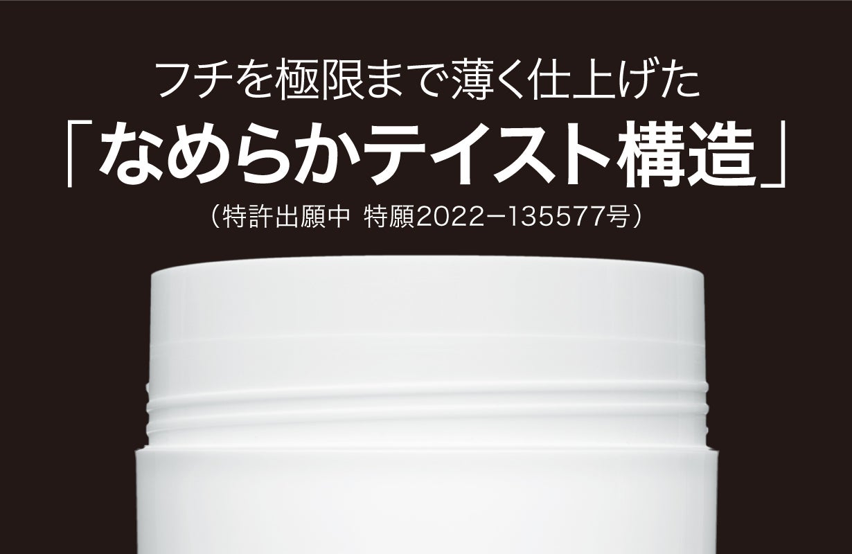 飲み口からネジ部分を外すことで飲みやすさを追求した『なめらかテイスト構造』(特許出願中 特願2022-135577号)により、繊細な口当たりを実現しました。