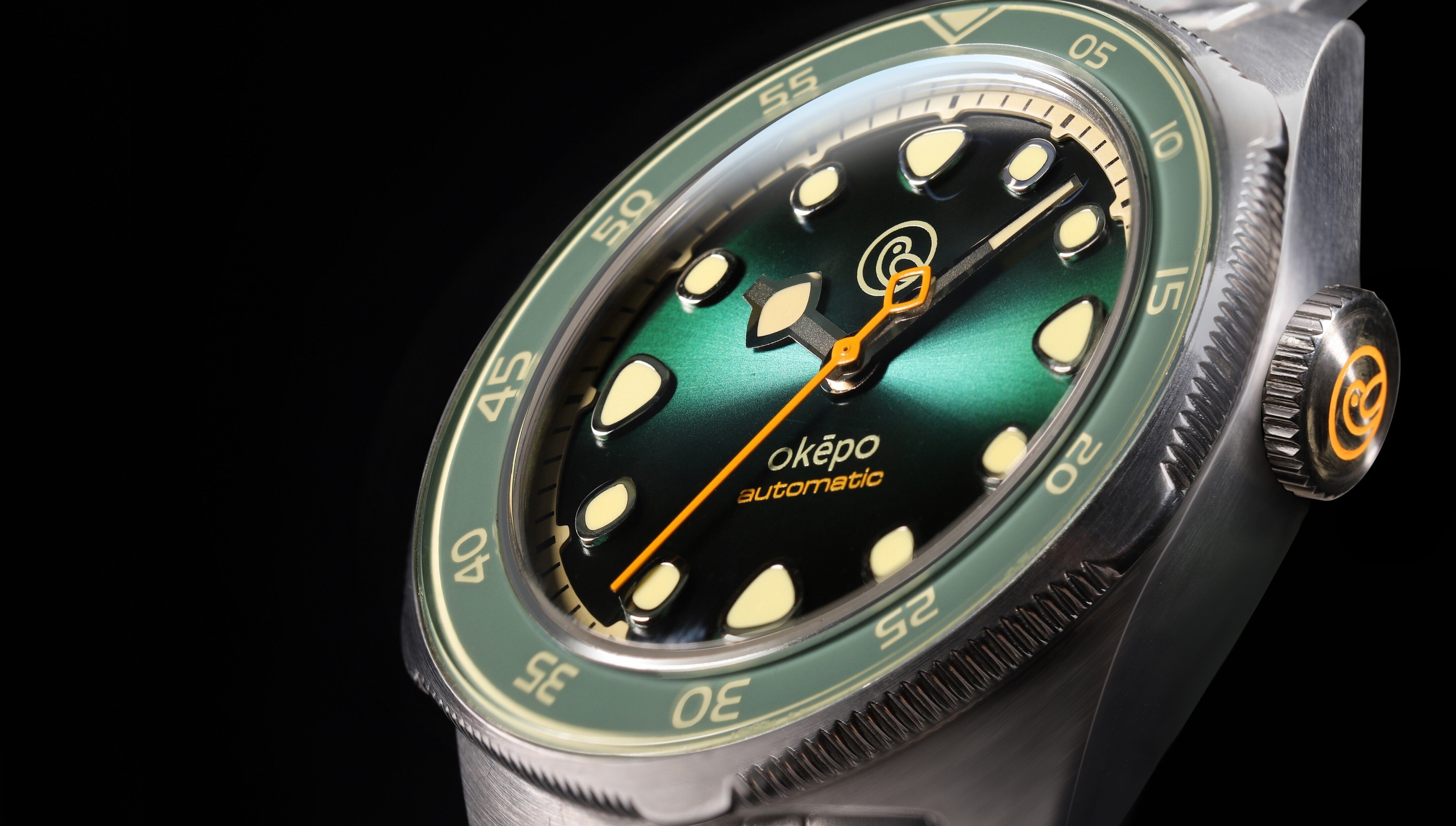 KO01“MASAI”:スチールケース/グリーン光沢ダイヤル/ミントグリーン・ベゼル
