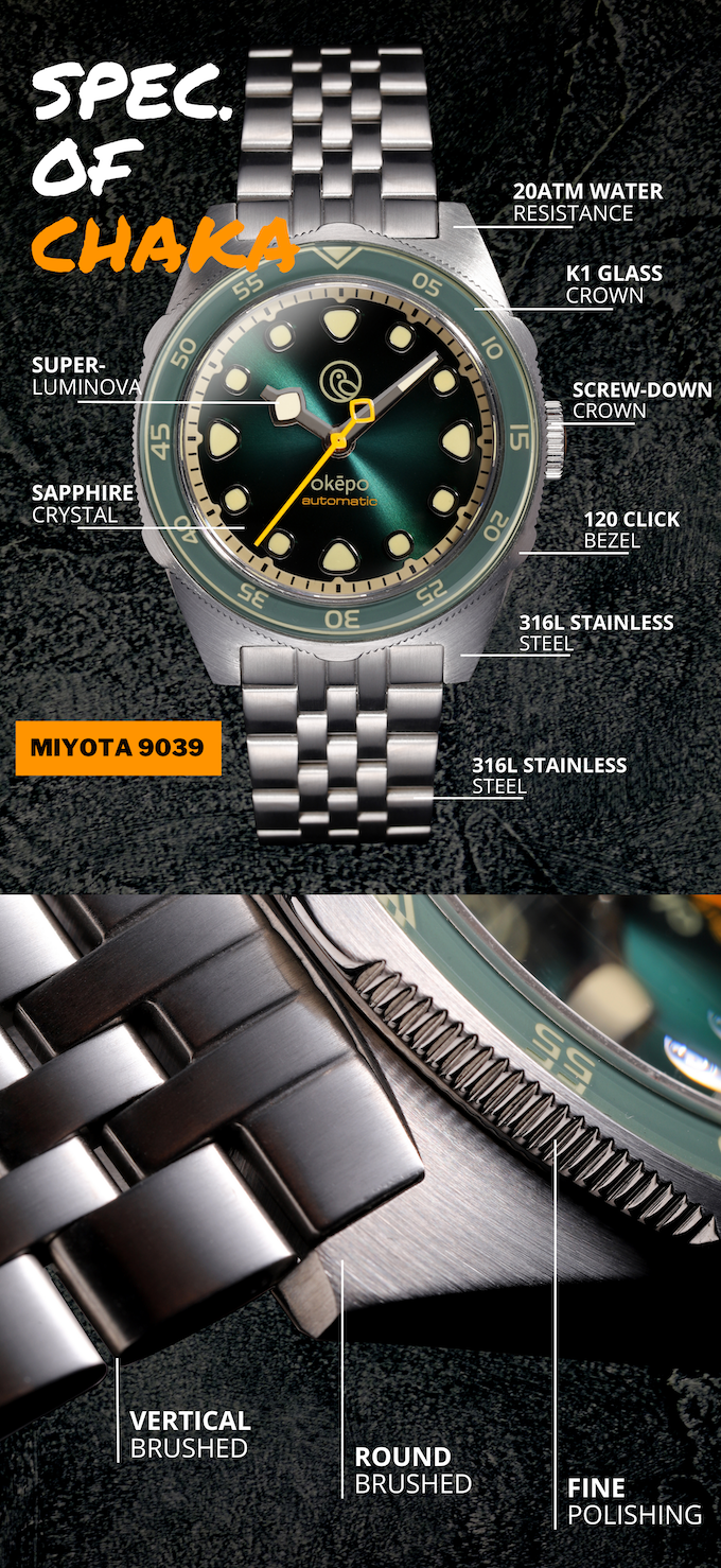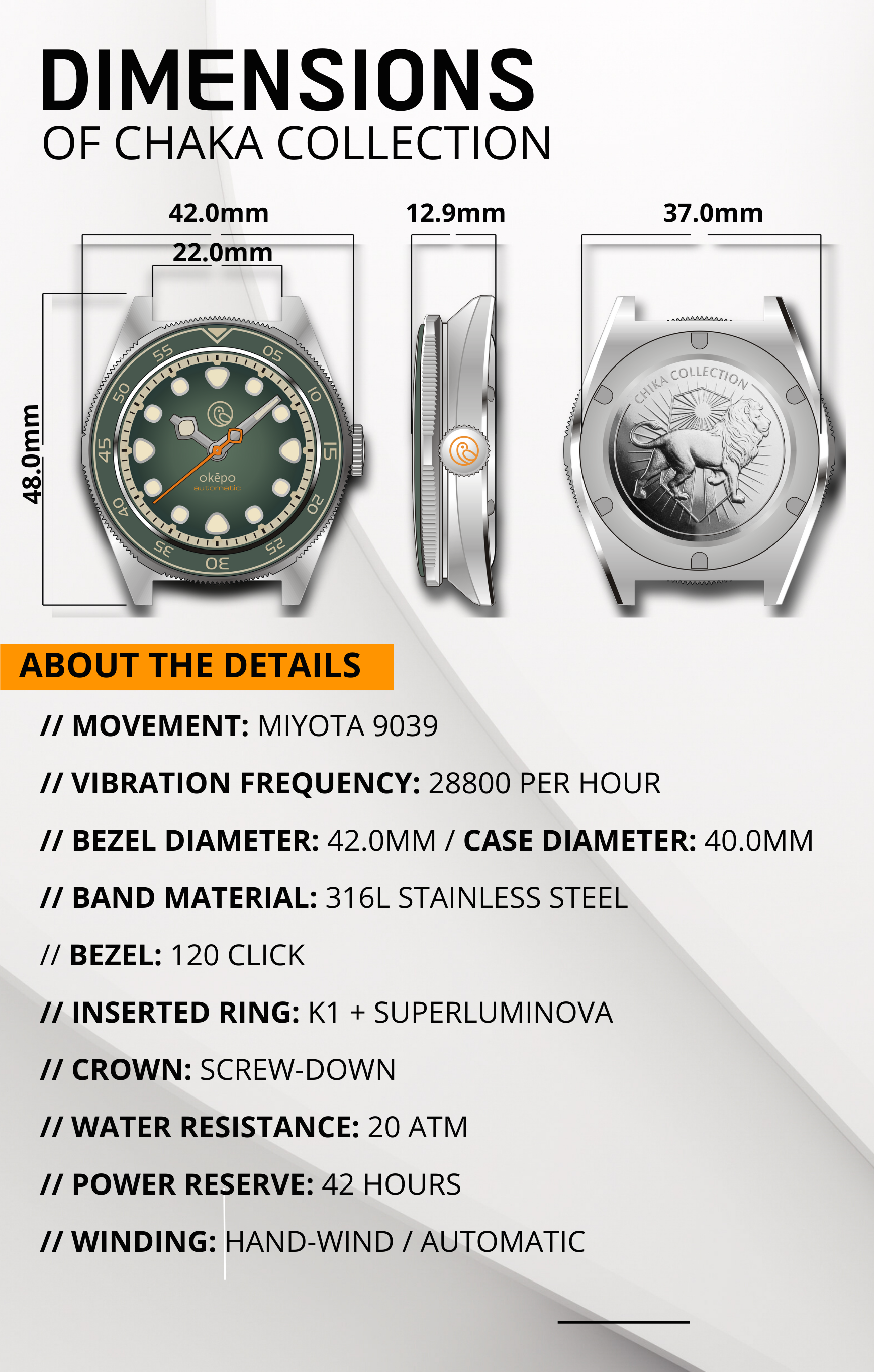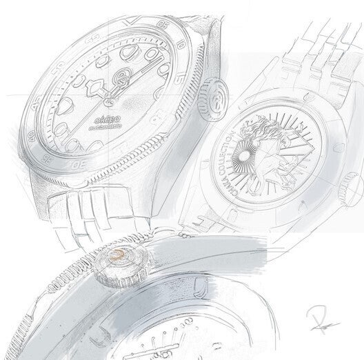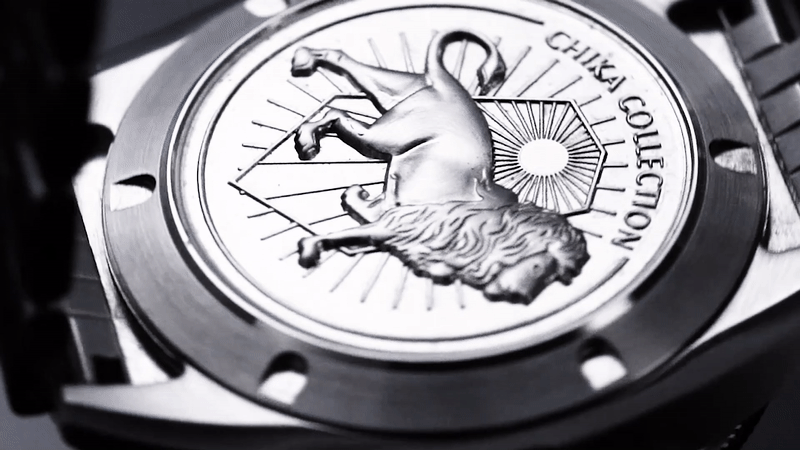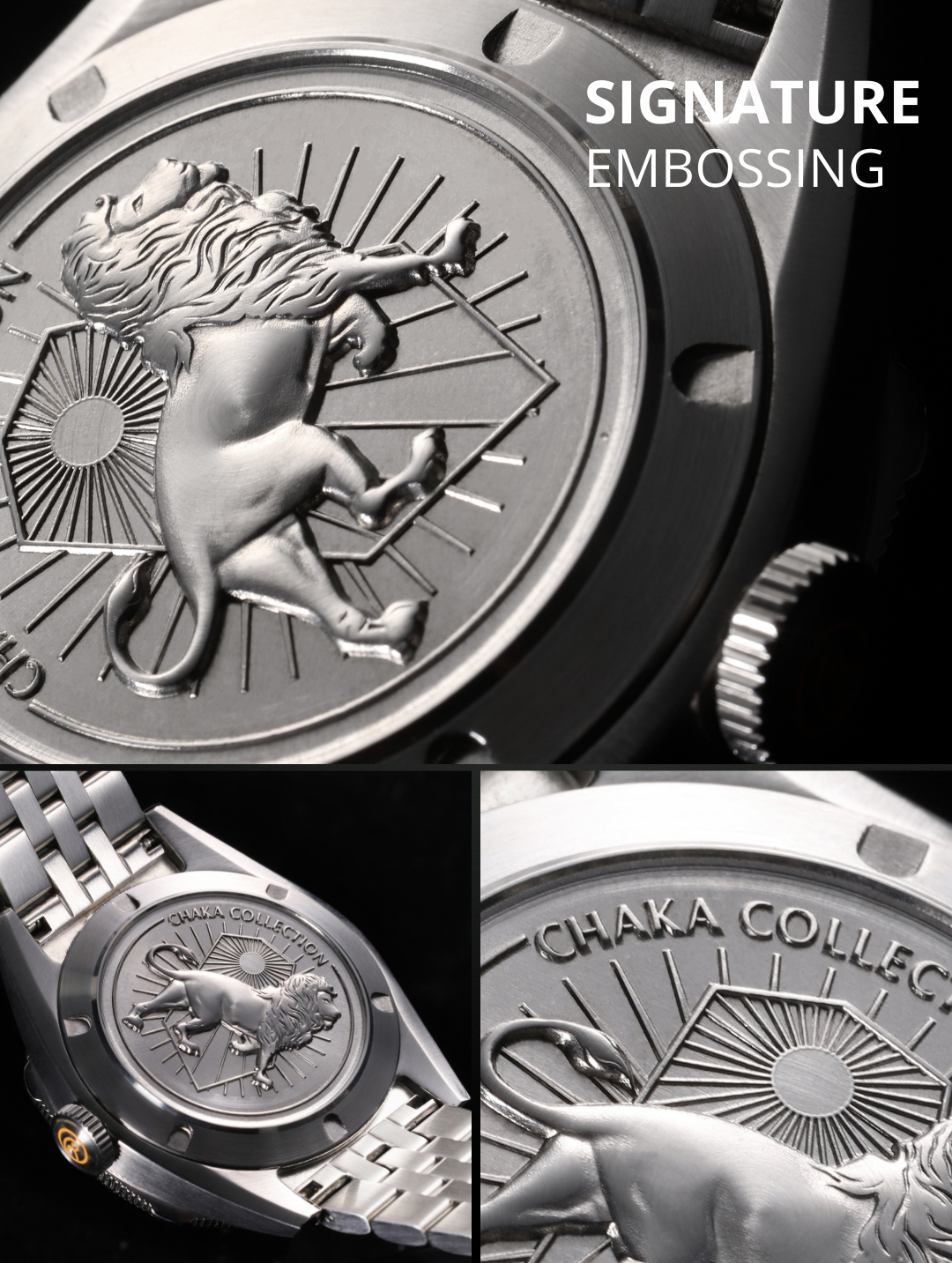 ケースバックには、OKEPOをシンボルであるライオンの立体レリーフが施されています。 繊細な彫刻の作成には多大な労力が費やされ、最初の手描きのスケッチ、ペイント、3D 図面の複数の修正には 2週間かかりました。金型の鋳造と修正を2度繰り返し、ようやく満足のいく仕上がりが得られました。