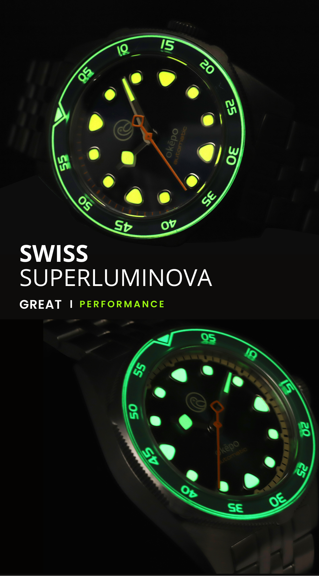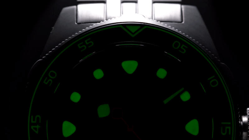 インサートリングは強力なK1ガラスで作られており、スーパールミノバの夜光コーティングが施されています。