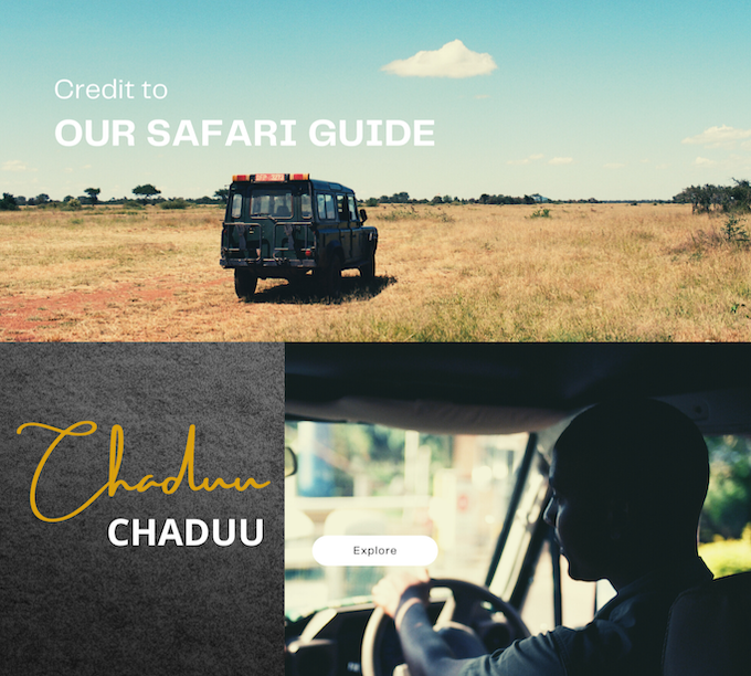 約2週間にわたるサファリ ツアーで、ガイドのチャドゥ氏は運転、食事、サファリ野生動物ガイドのお世話をしてくれました。彼はアフリカの野生動物に精通し、優れた視力と動物への深い理解を持っています。