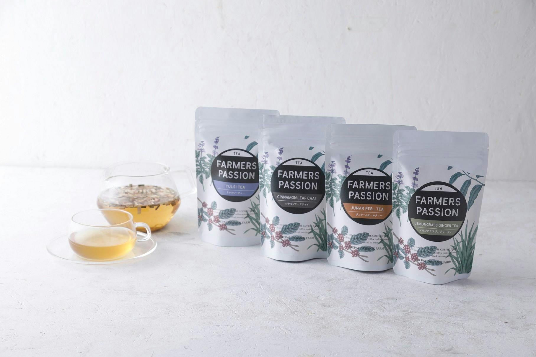 コーヒーと一緒に育ったハーブやフルーツをふんだんに使った自家製のティーのティーバッグ。いつものティータイムが一味変わります。もちろん、栽培から収穫、加工まで全て自社で手掛けていますので安心してお飲みいただけます。