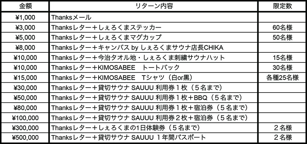 そして、私たちは多くの方に愛されてきたしぇろくまサウナという唯一無二の空間を無くしたくない、これまで以上にしぇろくまサウナを盛り上げていきたい、そう強く思いました。私たちが「しぇろくまサウナを復活させたい、できる」と思えたのは応援してくださる方がいたからです。キモサベ規模の大きなサウナはすぐには作れないけれど、もう一度、しぇろくまサウナが多くの方から愛される空間となるよう、努めてまいります。