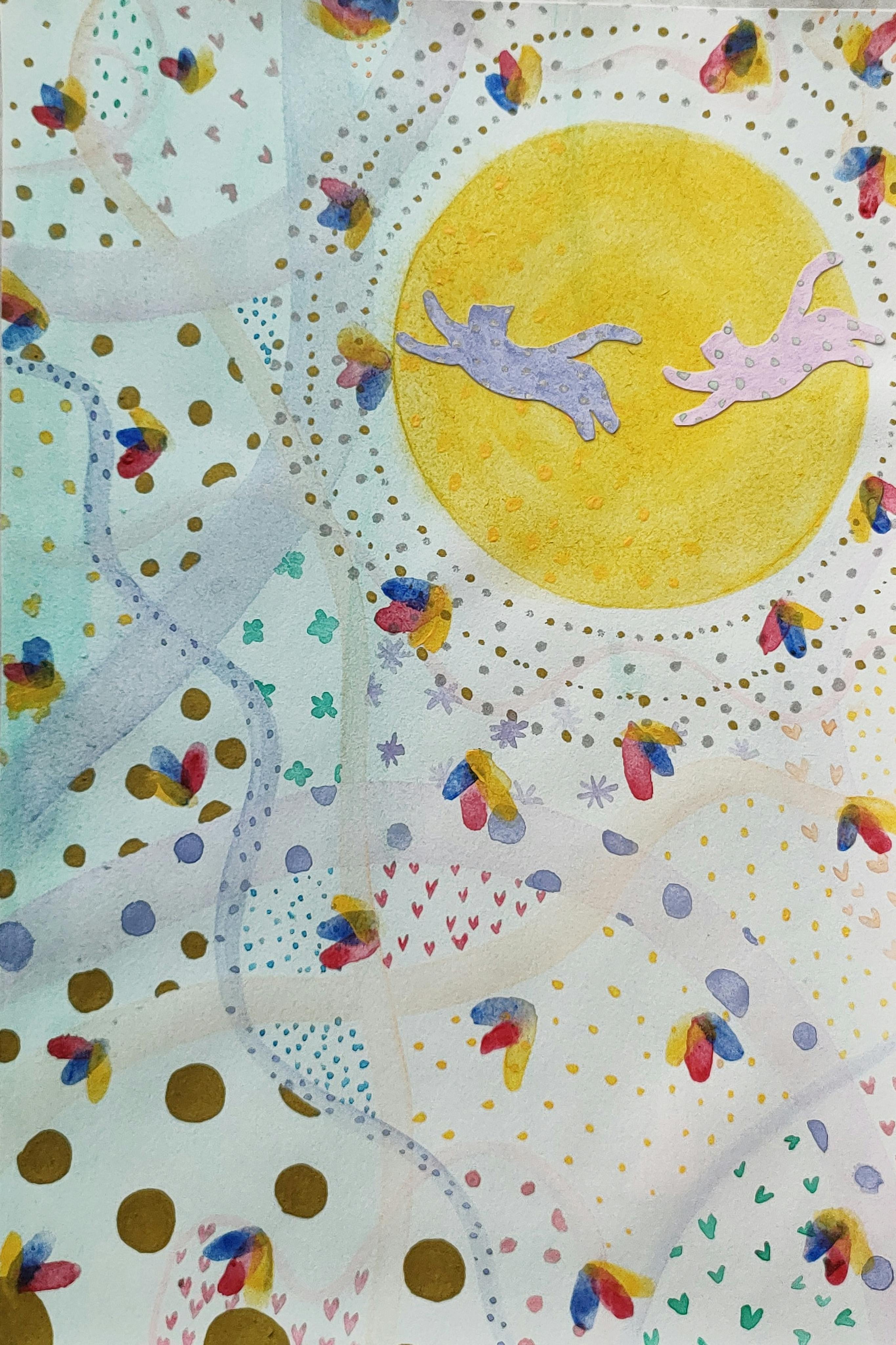 上記の手法を踏まえ、インスピレーションのままに直感的に仕上げた独創的な癒やしのアートが