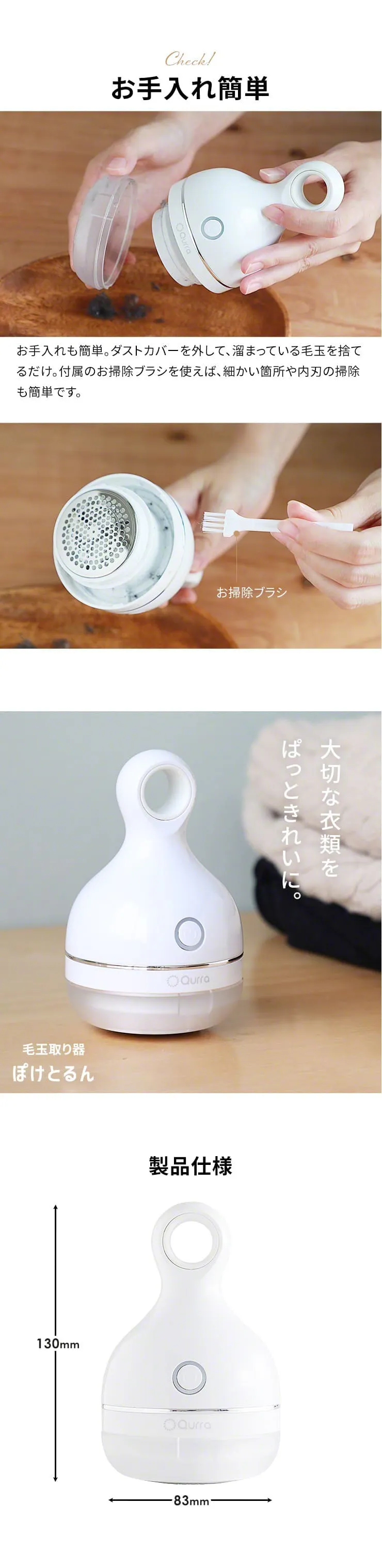 商品名:Qurra 毛玉取り器 ぽけとるん