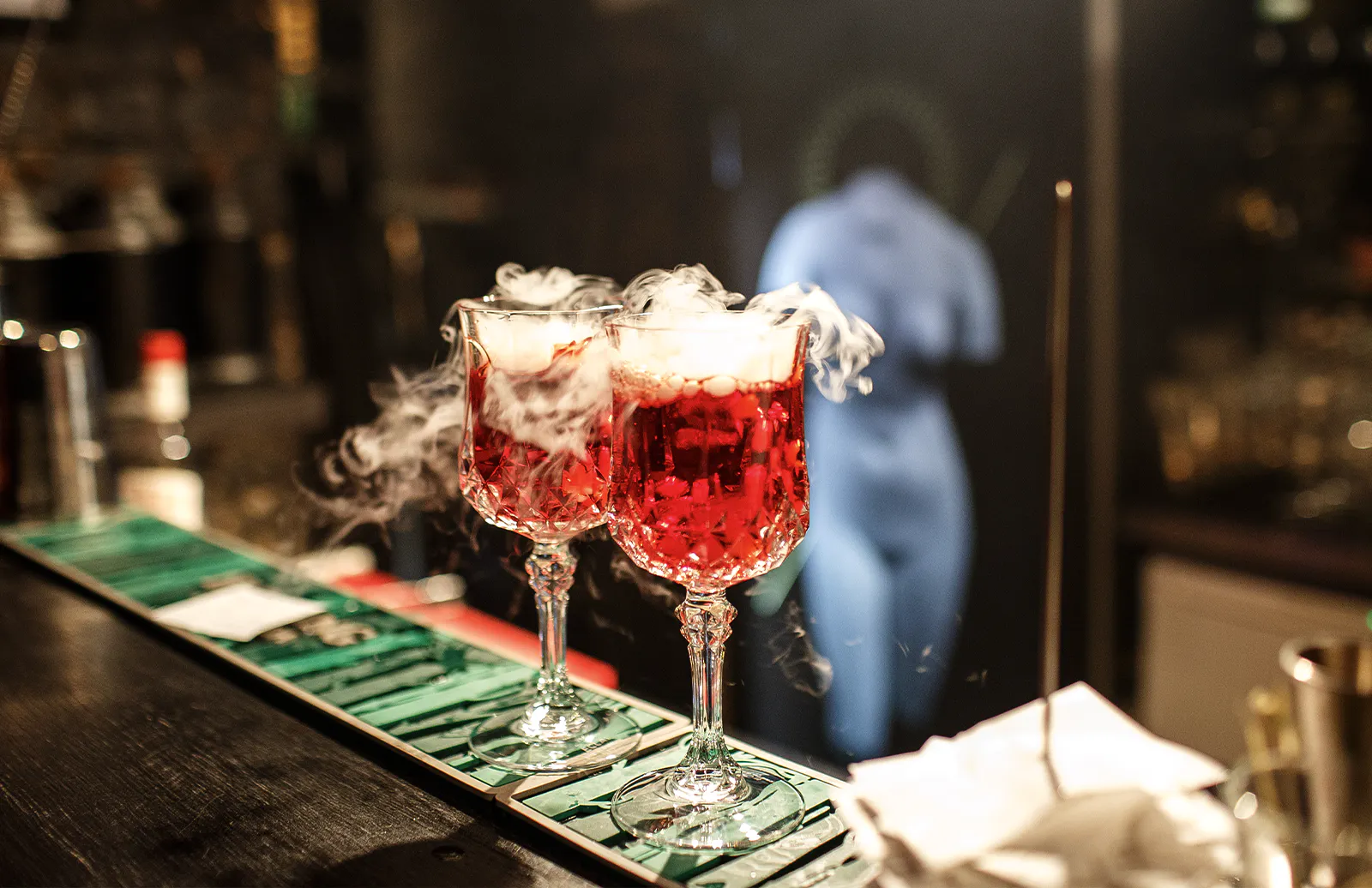 燻煙が落ち着いたら、スモークカクテルを楽しむだけ。