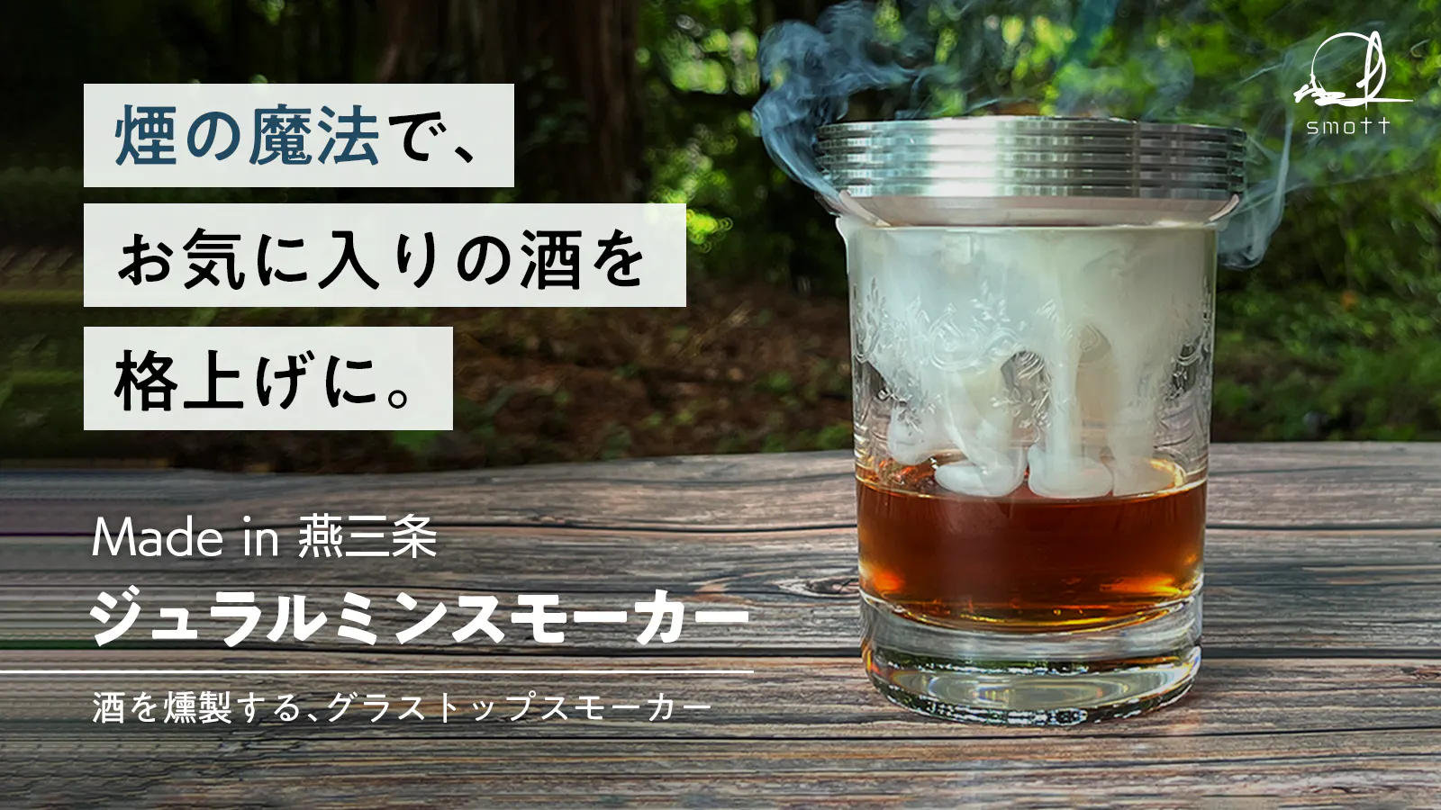 カクテルスモーカー「smott」は、ちょっとしたひと手間で、「いつもの晩酌をさらに特別な時間に」していただきたいという想いを込めて開発されました。